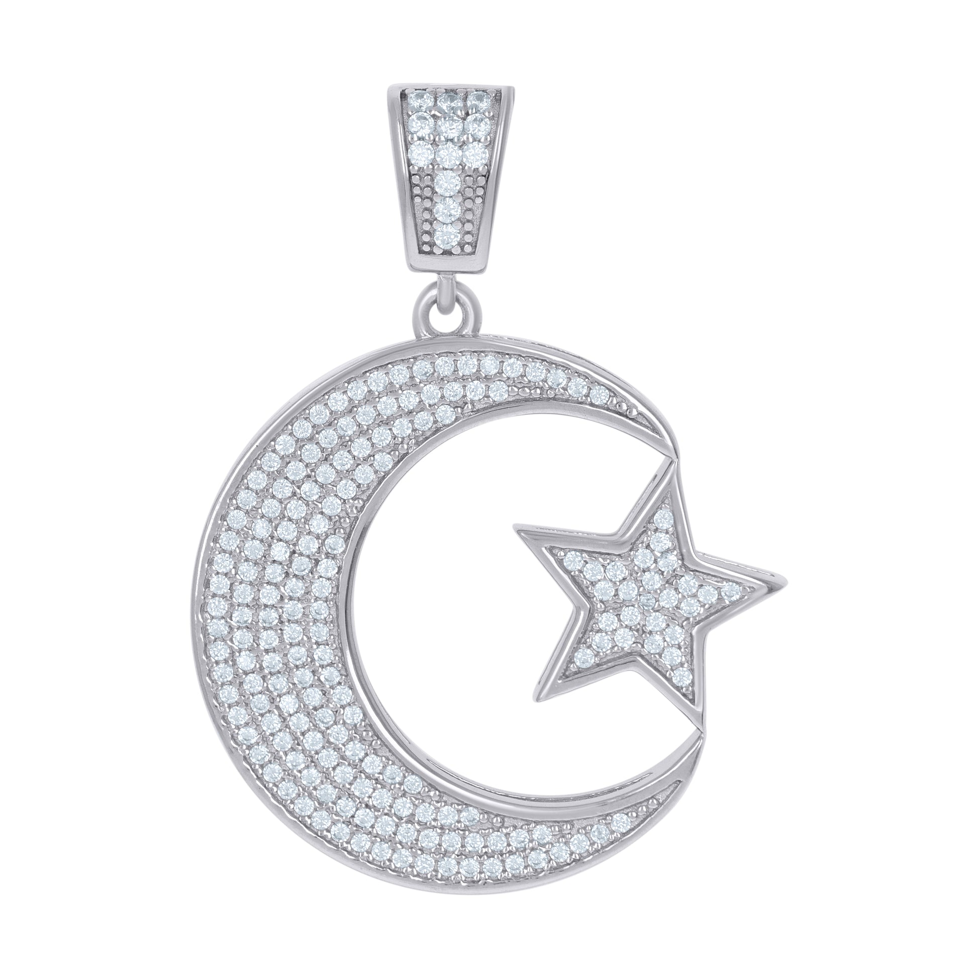 925 Sterling Silver Mens Cubic Zirconia Celestial Moon Star Charm Pendant