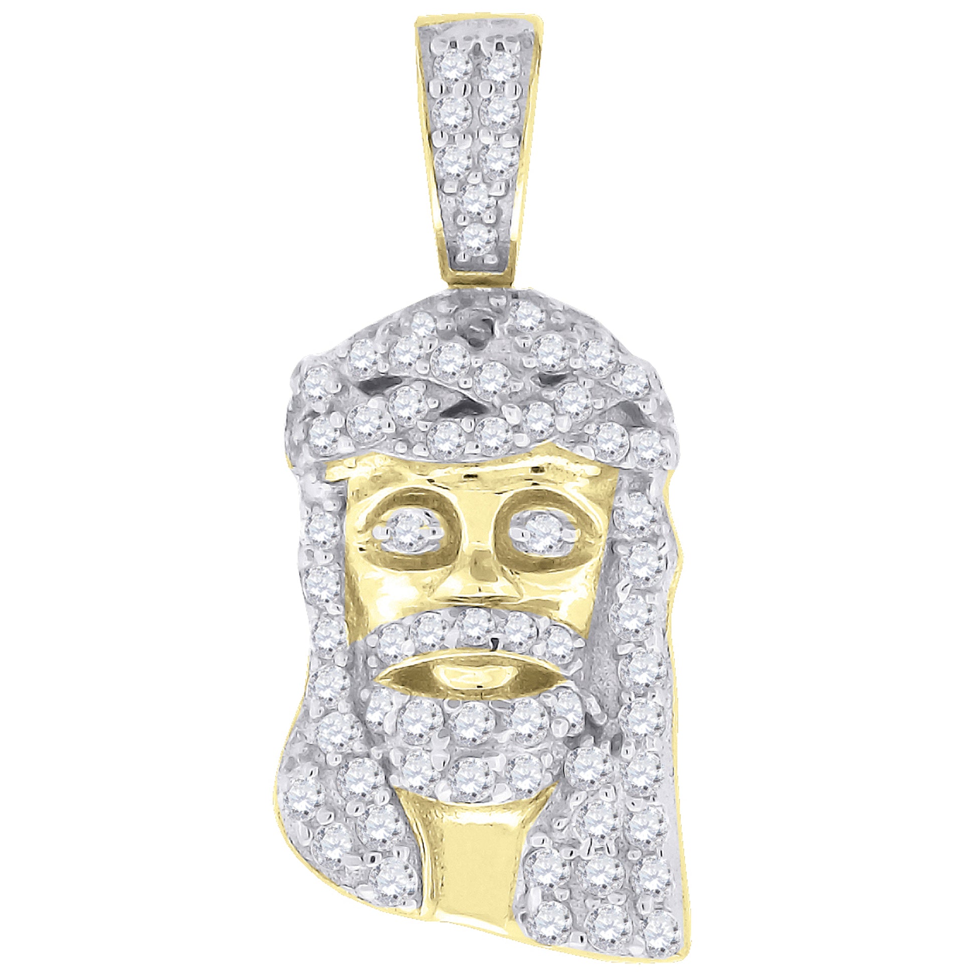 925 Sterling Silver Yellow-Tone Mens CZ Jesus Religious Charm Pendant