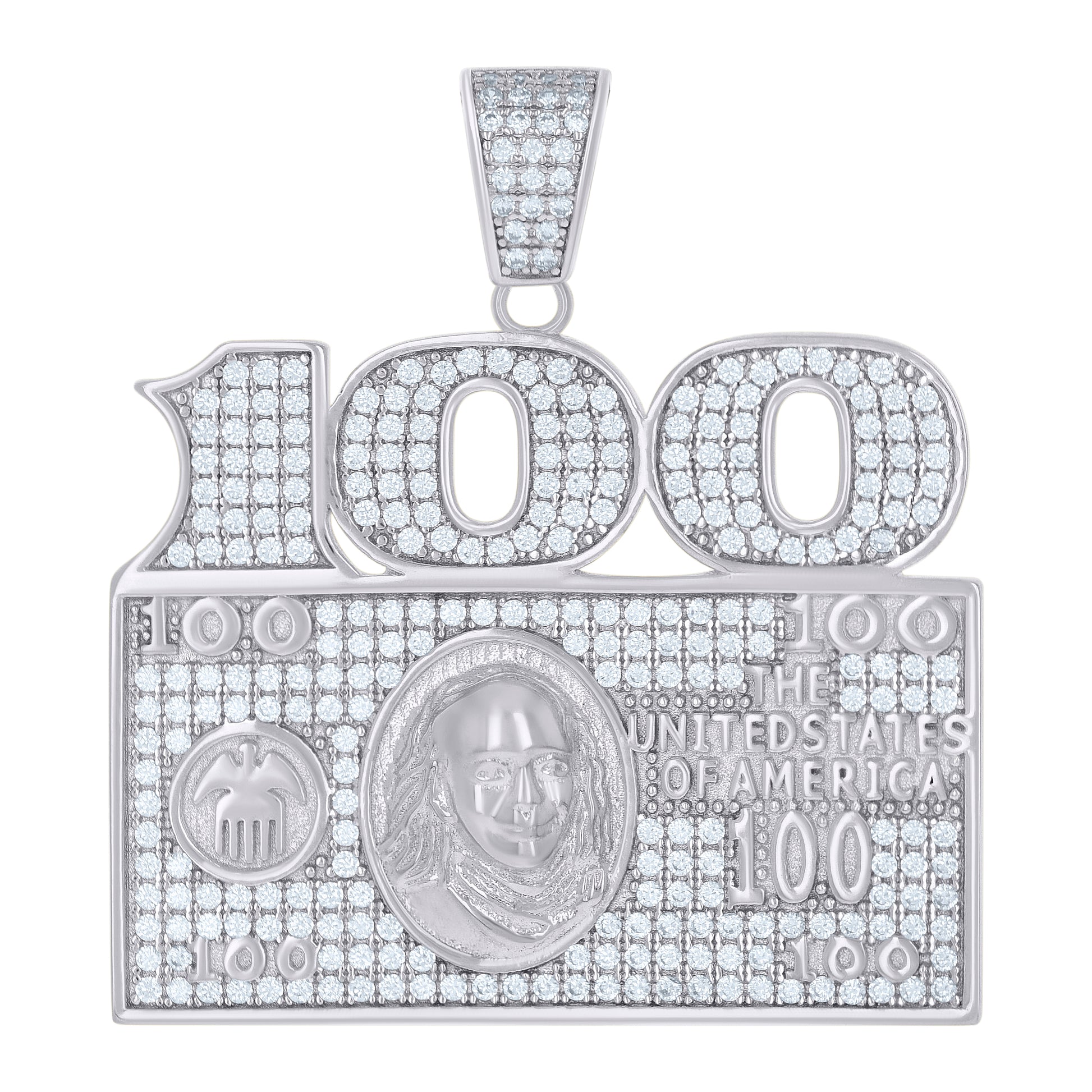 925 Sterling Silver Mens Cubic-Zirconia 100 Dollar Bill Currency Fashion Charm Pendant