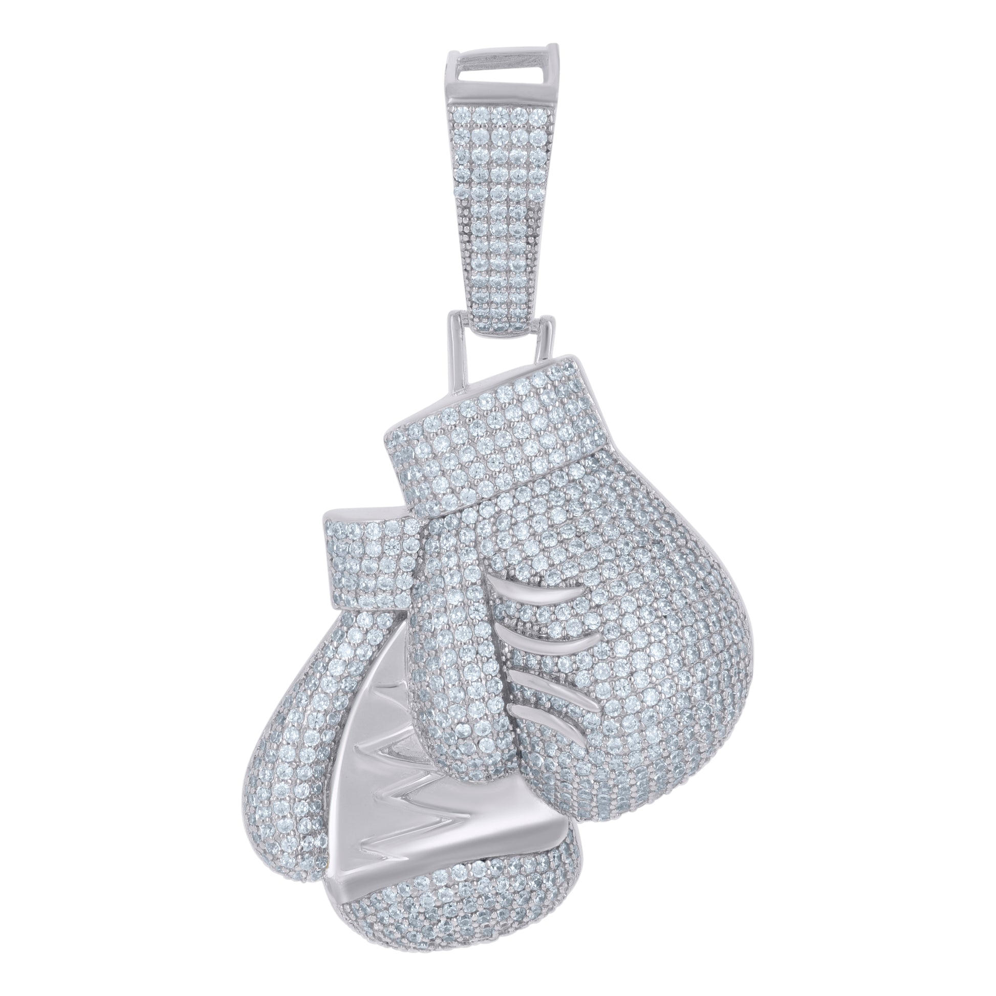 925 Sterling Silver Mens Cubic-Zirconia Boxing Gloves Sports Charm Pendant