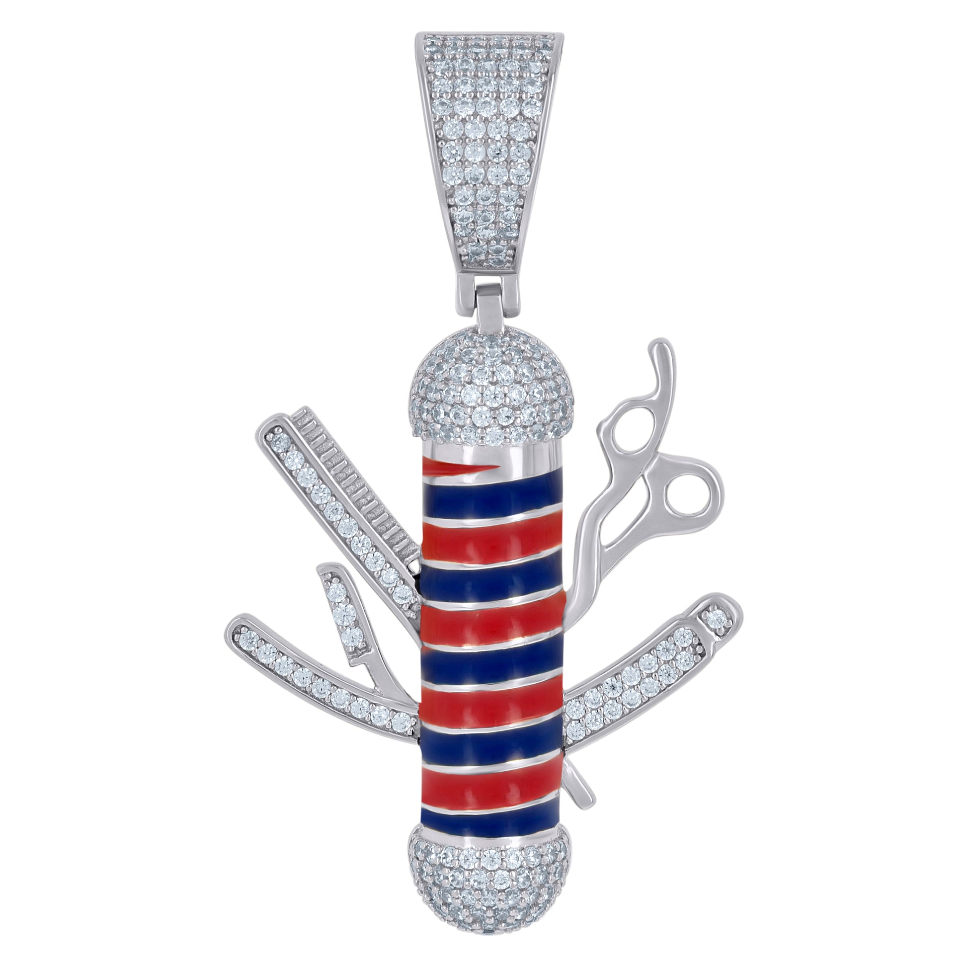 925 Sterling Silver Mens Cubic-Zirconia Barber's Pole Fashion Charm Pendant
