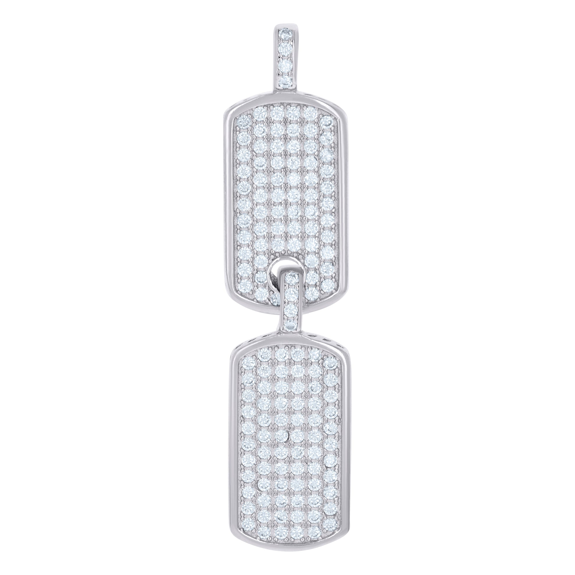 925 Sterling Silver Mens Cubic-Zirconia Double Dog Tag Fashion Charm Pendant