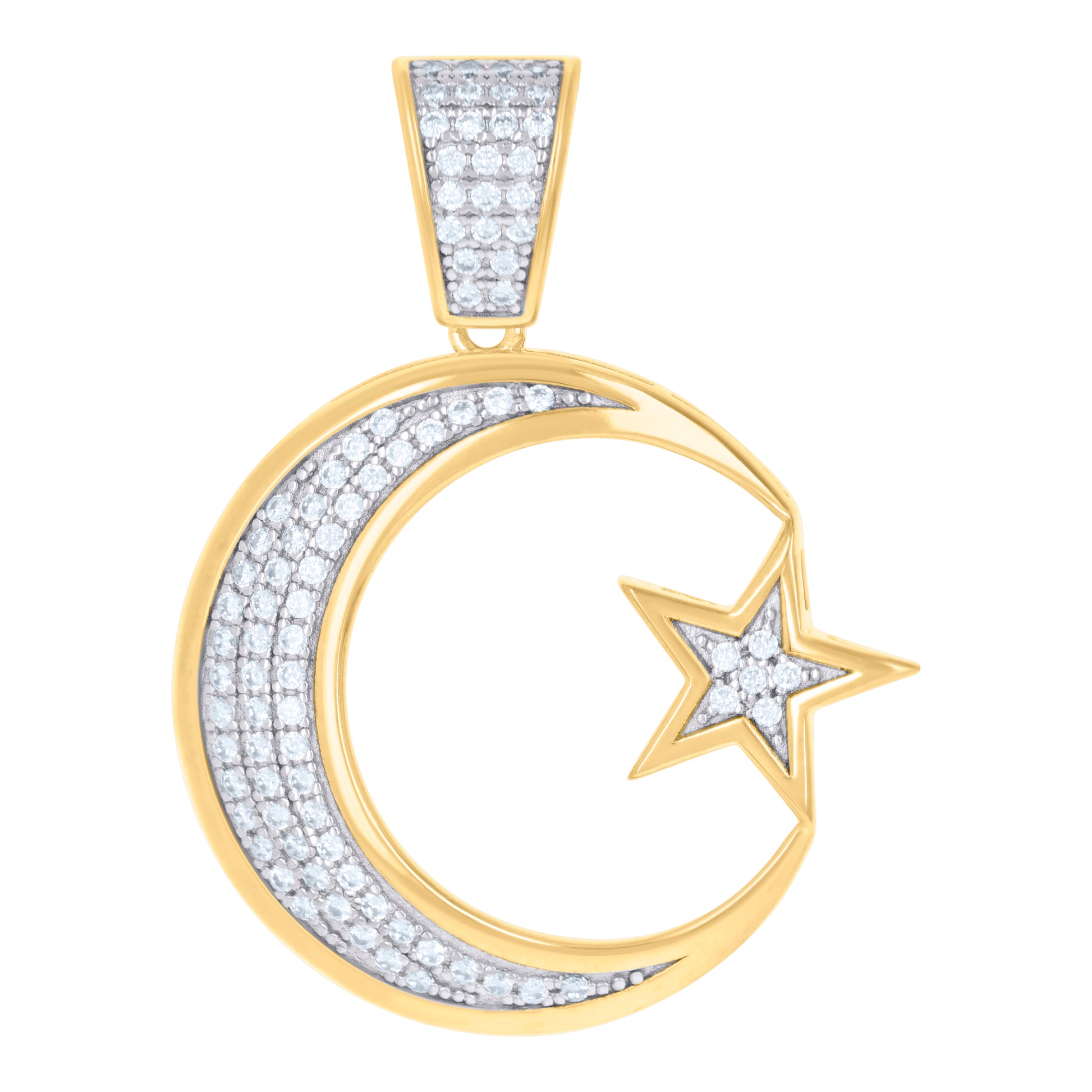 925 Sterling Silver Yellow-tone Mens Cubic-Zirconia Moon Star Celestial Charm Pendant