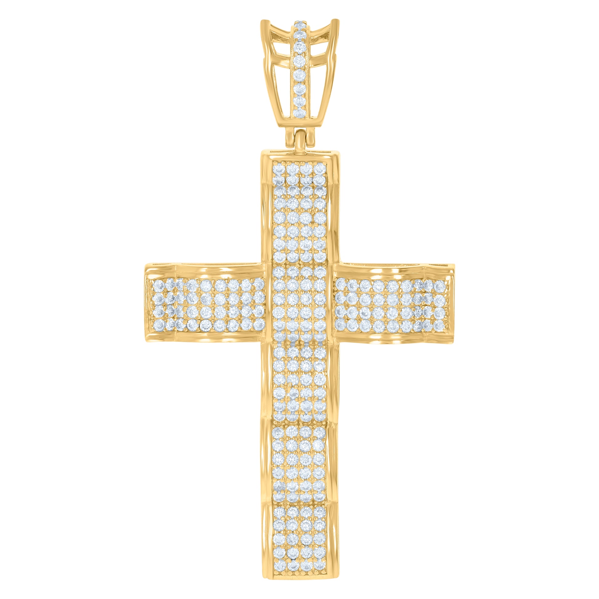 925 Sterling Silver Yellow-tone Mens Cubic-Zirconia Cross Religious Charm Pendant