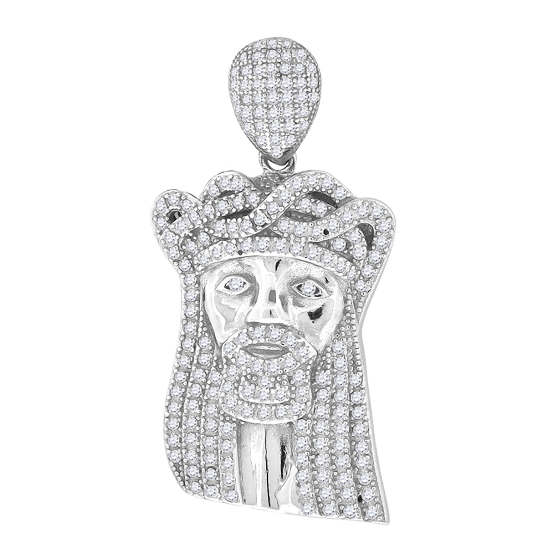 925 Sterling Silver Mens CZ Jesus Religious Charm Pendant