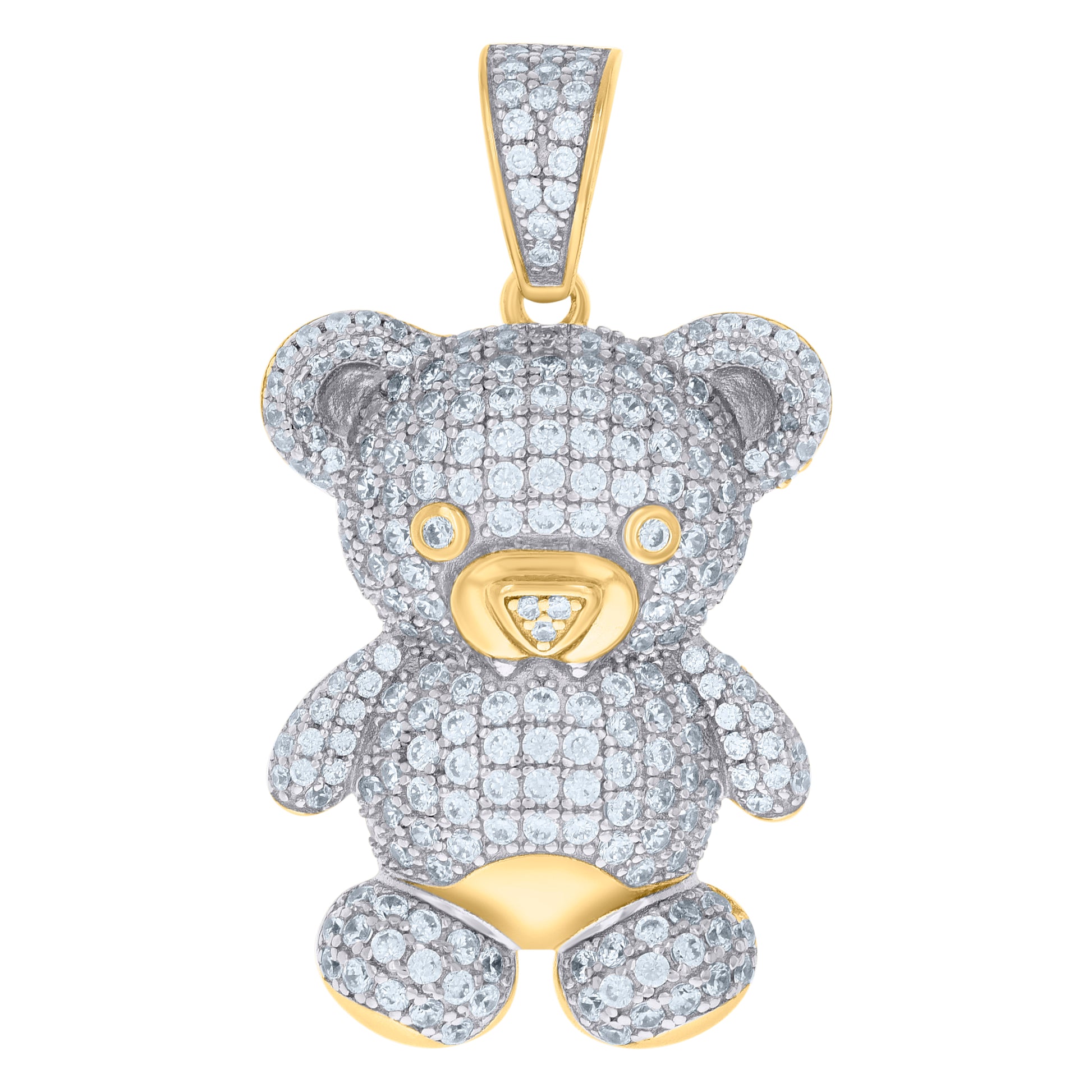 925 Sterling Silver Yellow-Tone Mens Cubic-Zirconia Teddy Bear Fashion Charm Pendant