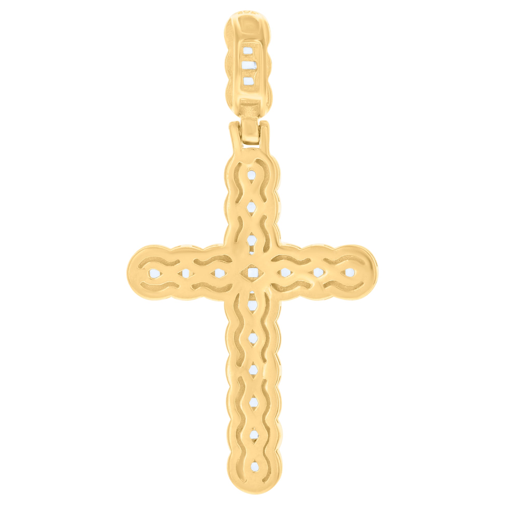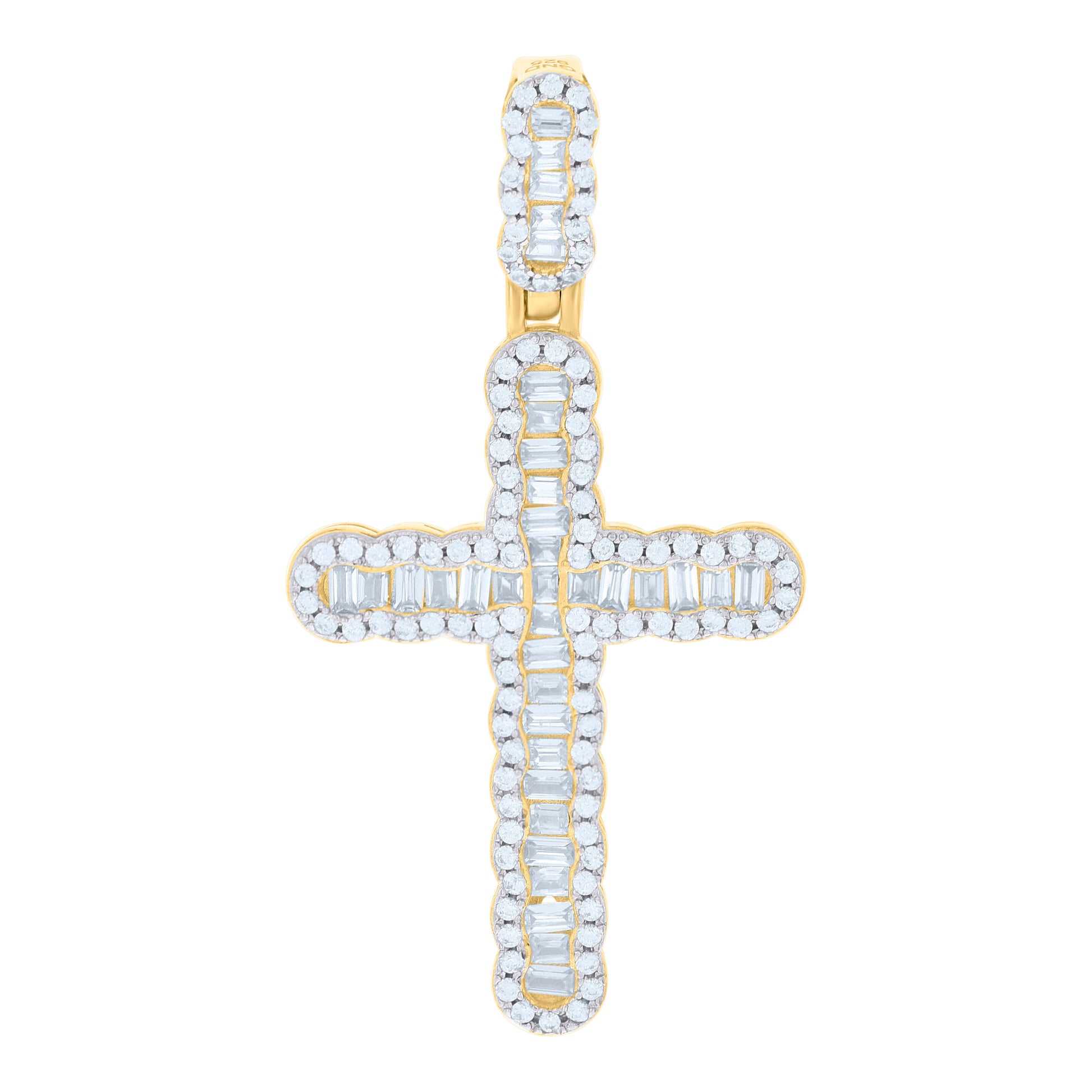 925 Sterling Silver Yellow-Tone Men Baguette Round Cubic-Zirconia Cross Religious Charm Pendant
