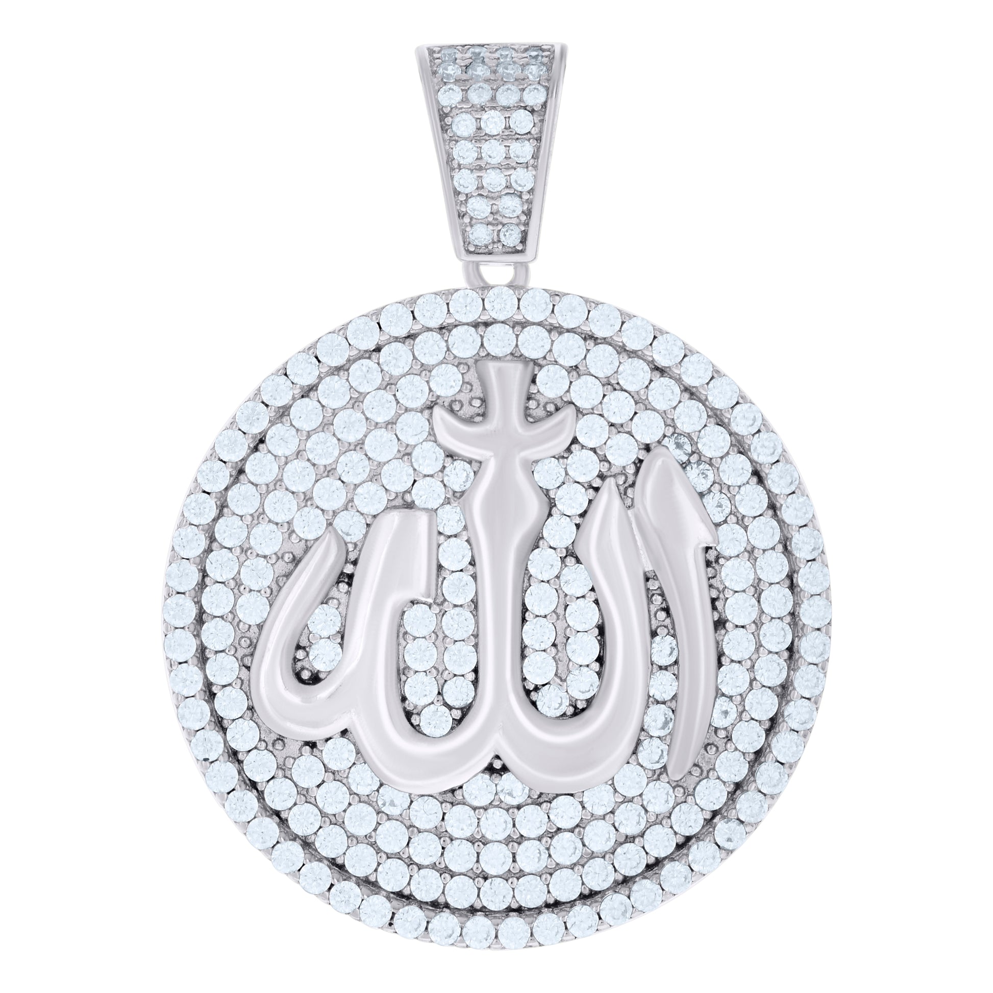 925 Sterling Silver Men Cubic-Zirconia Allah Symbol Religious Charm Pendant