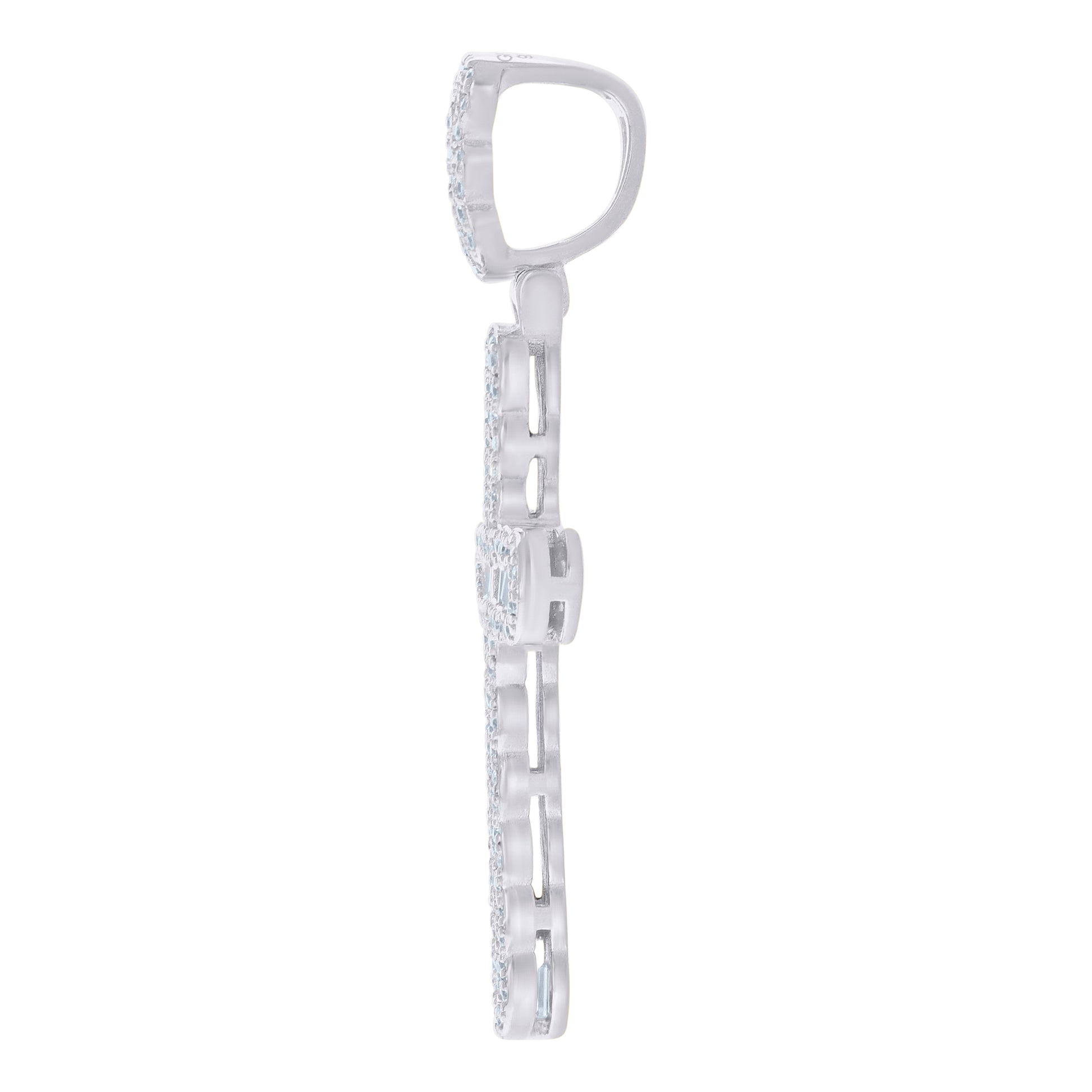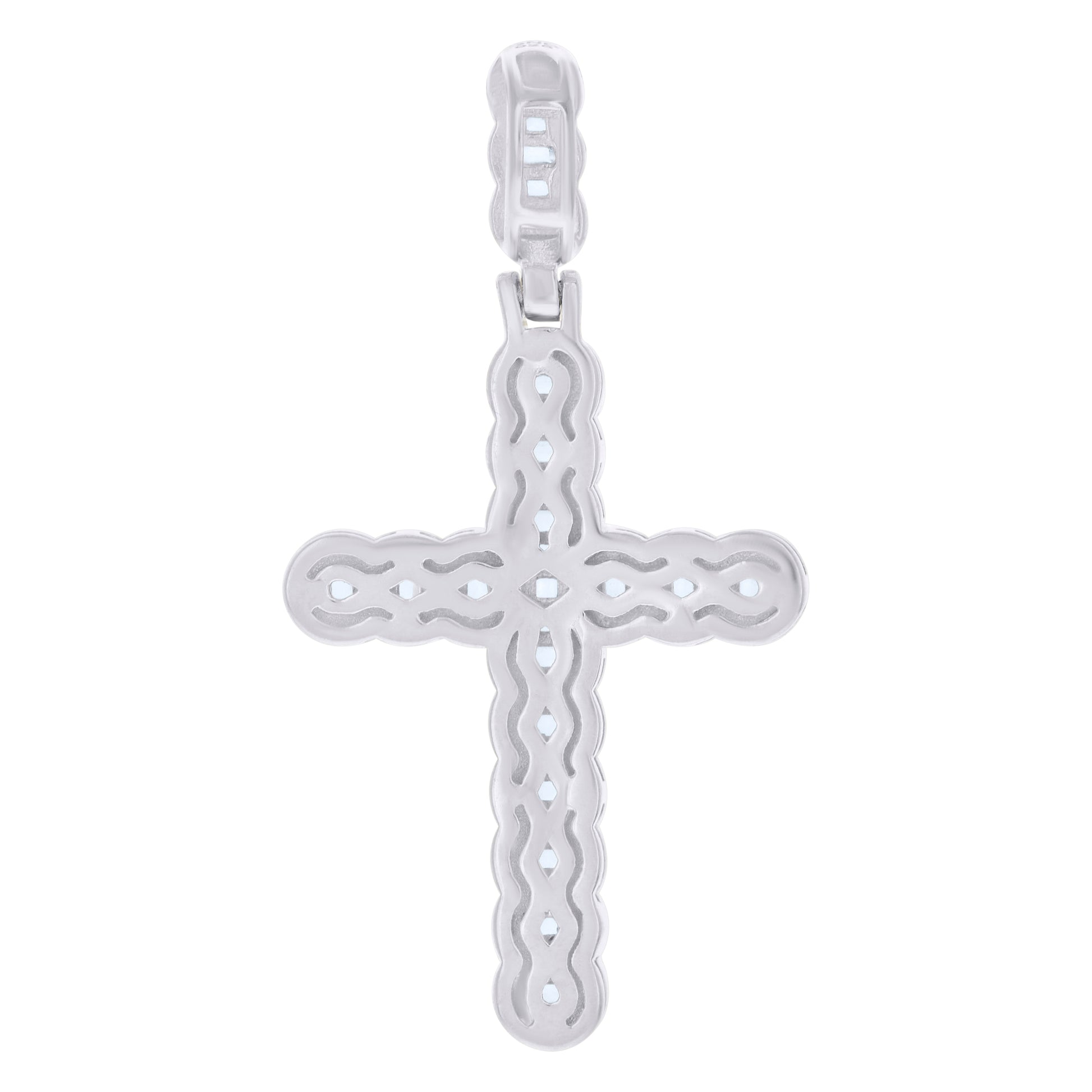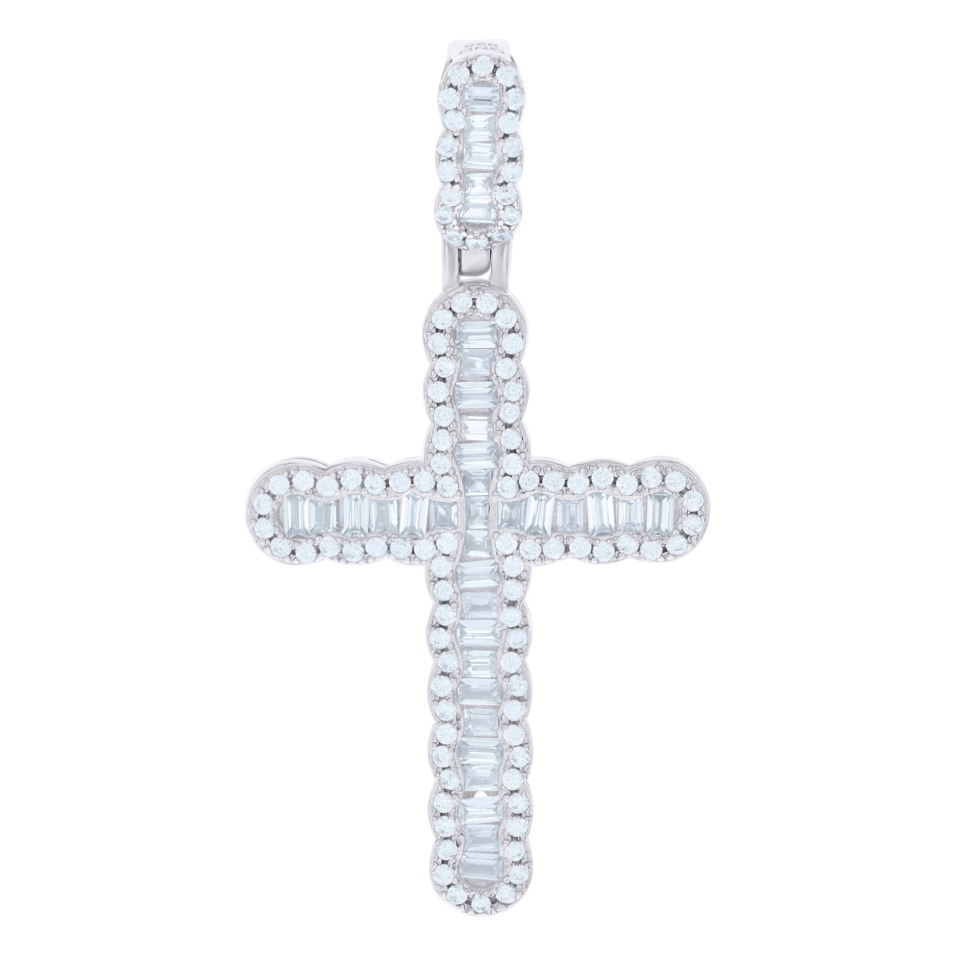 925 Sterling Silver Men Baguette Round Cubic-Zirconia Cross Religious Charm Pendant