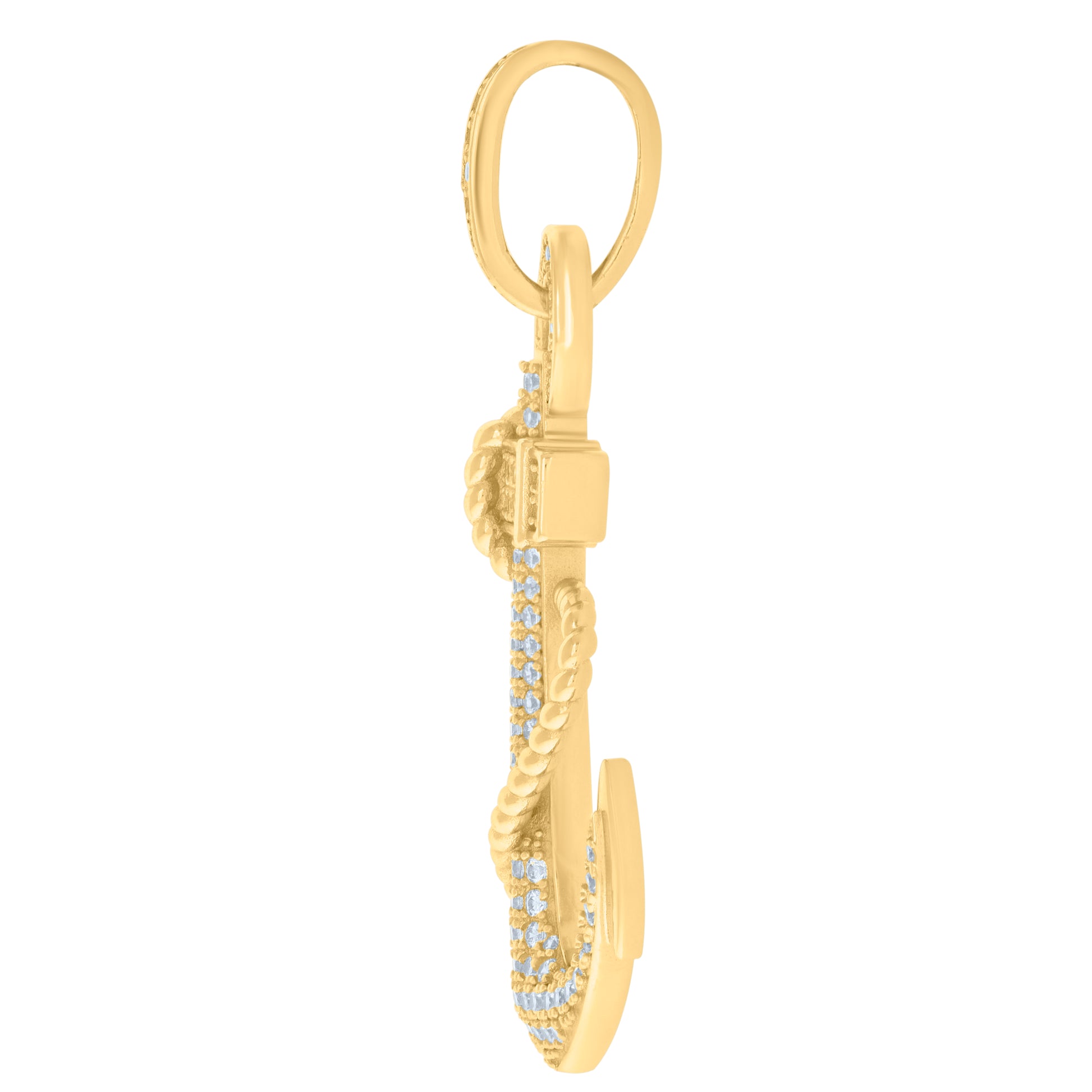 925 Sterling Silver Yellow-Tone Men Cubic-Zirconia Anchor Ocean Life Charm Pendant