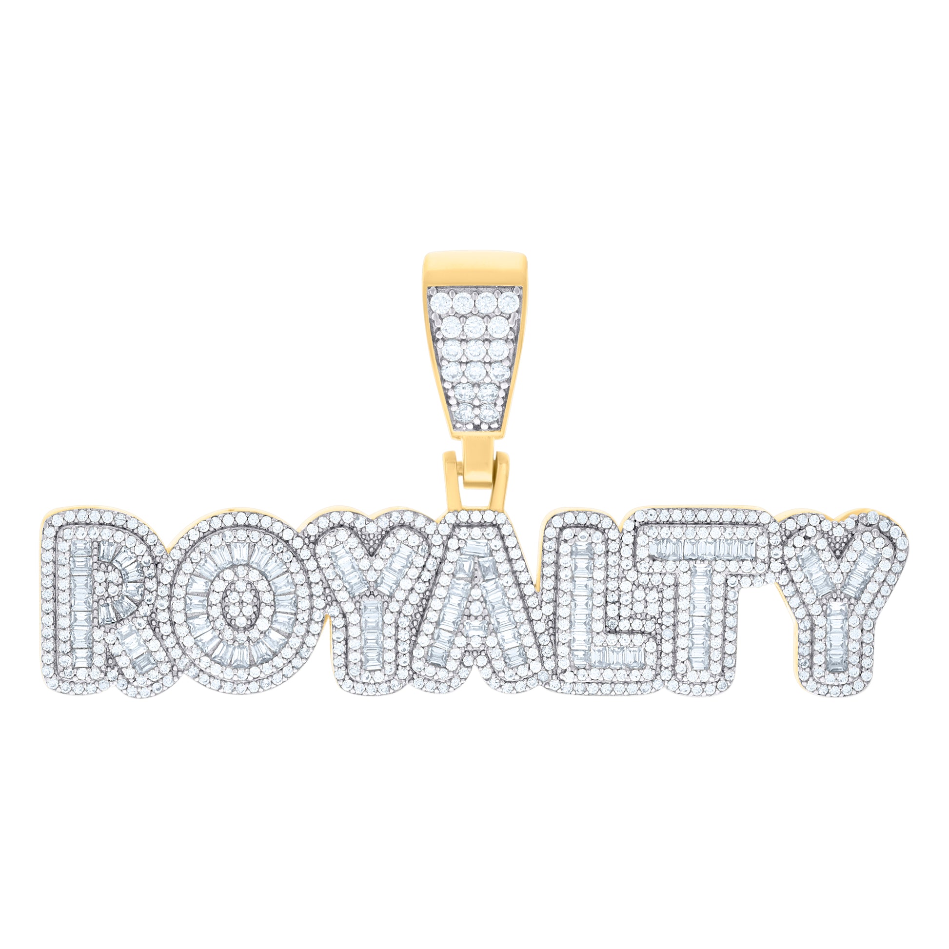 925 Sterling Silver Yellow-Tone Mens Baguette Round ROYALTY Fashion Charm Pendant