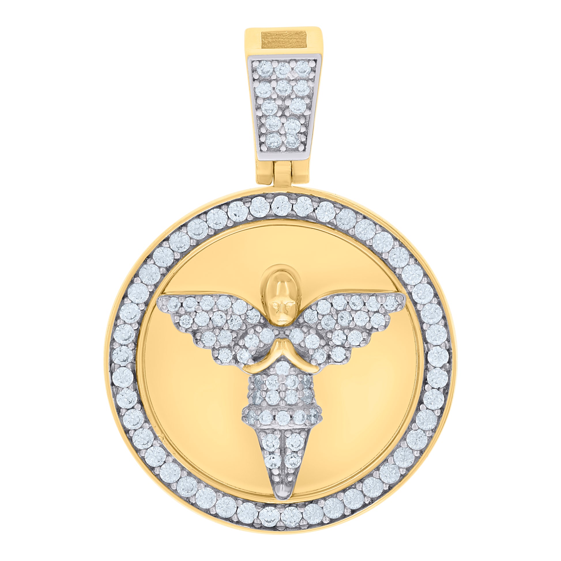 925 Sterling Silver Yellow-Tone Mens Cubic-Zirconia Angel Religious Medallion Charm Pendant