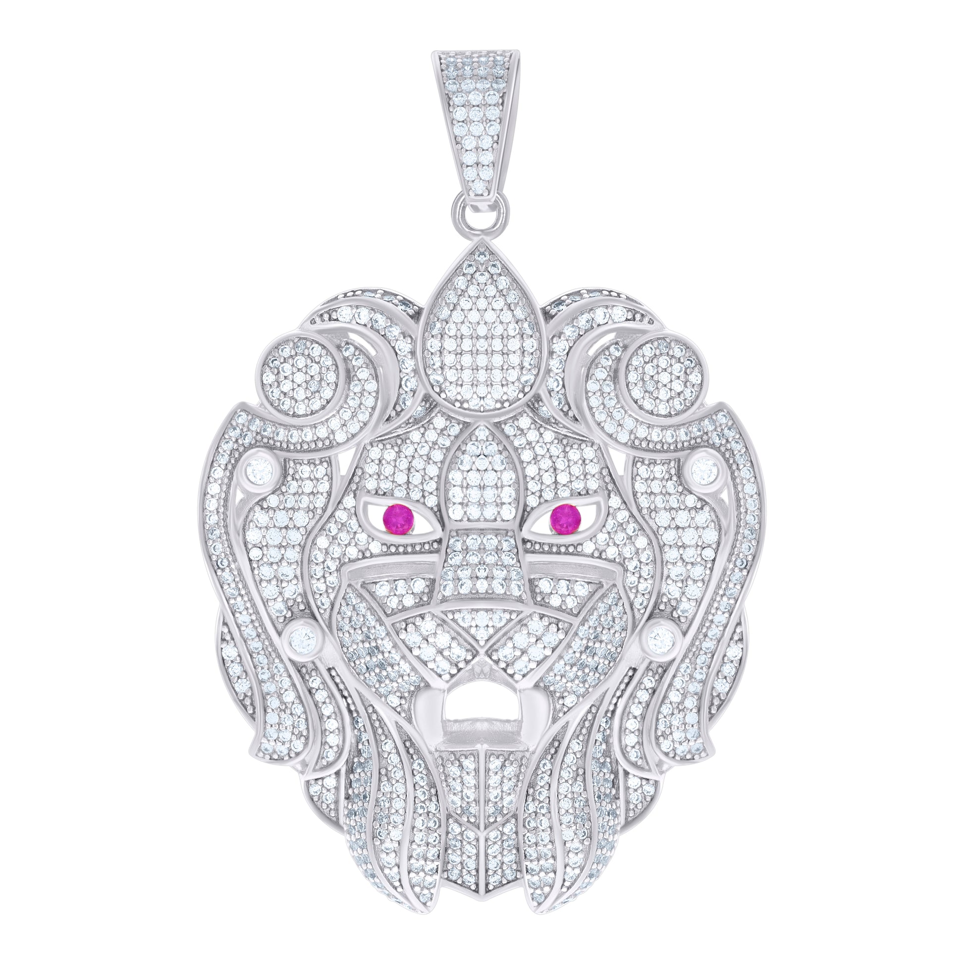 925 Sterling Silver White Mens Pink White Cubic-Zirconia Lion Head Charm Pendant