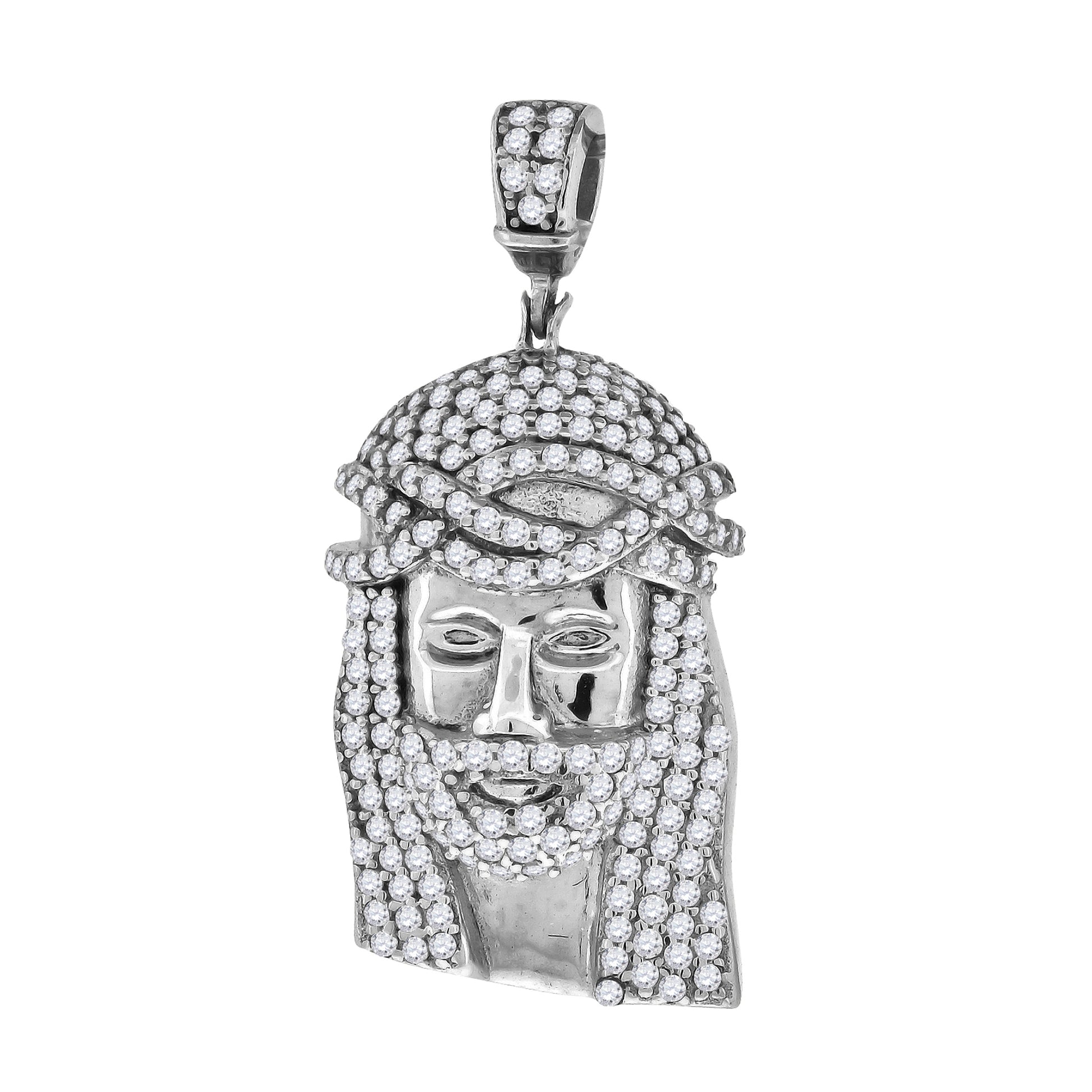 925 Sterling Silver Mens CZ Jesus Religious Charm Pendant