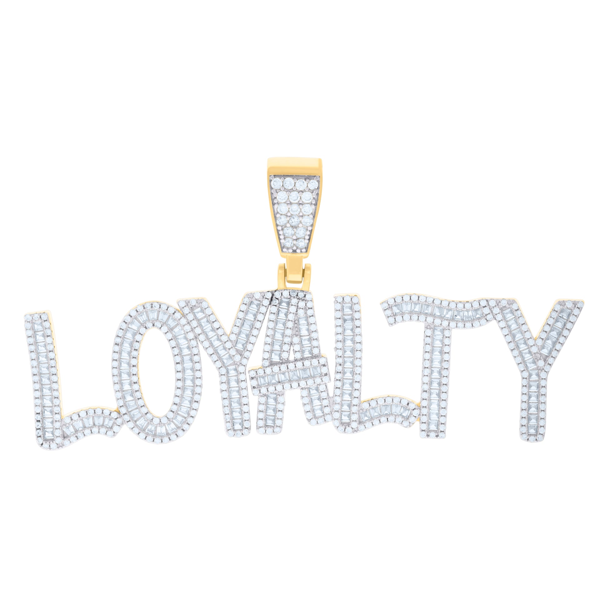 925 Sterling Silver Yellow-Tone Mens Baguette Round Loyalty Fashion Charm Pendant