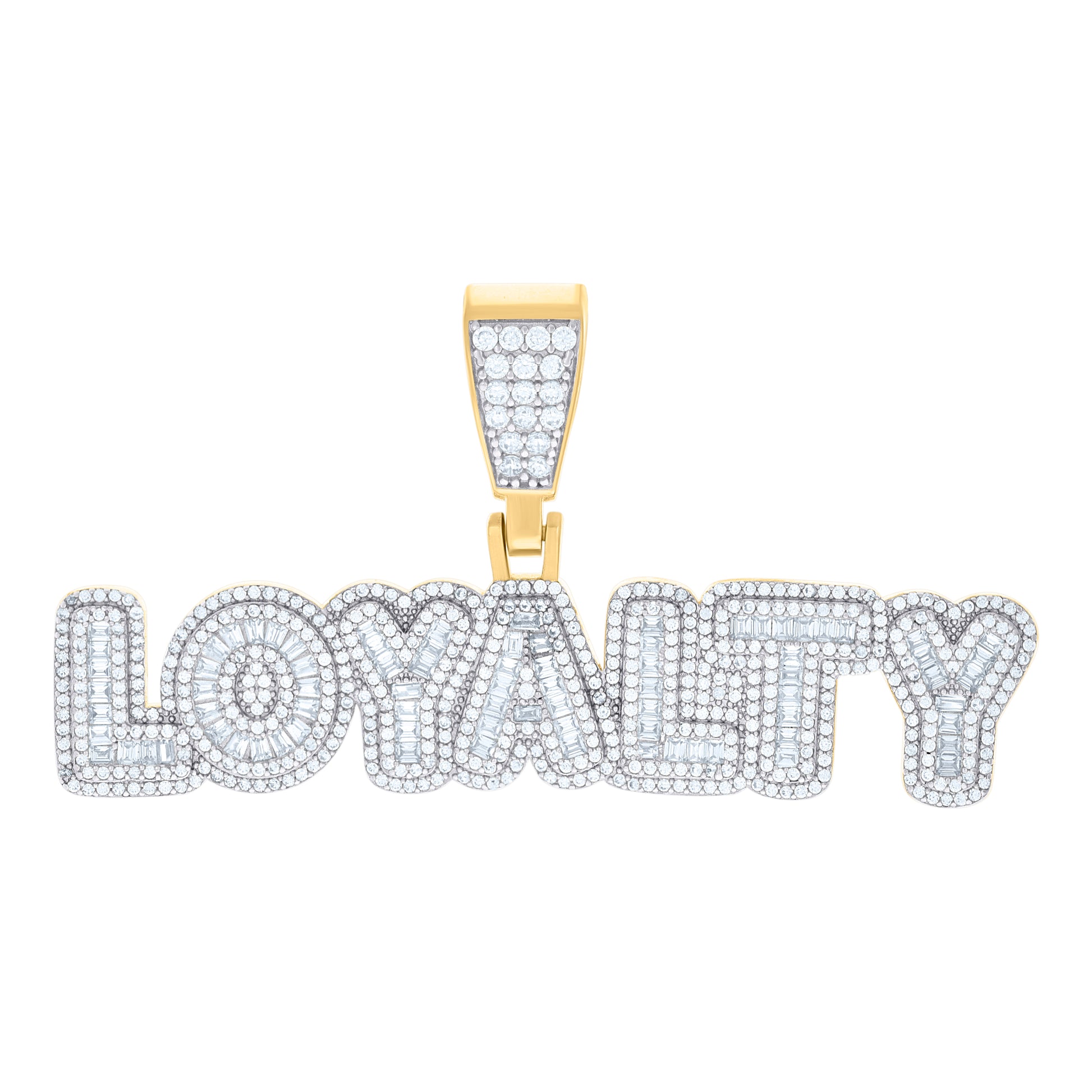 925 Sterling Silver Yellow-Tone Mens Baguette Round LOYALTY Fashion Charm Pendant
