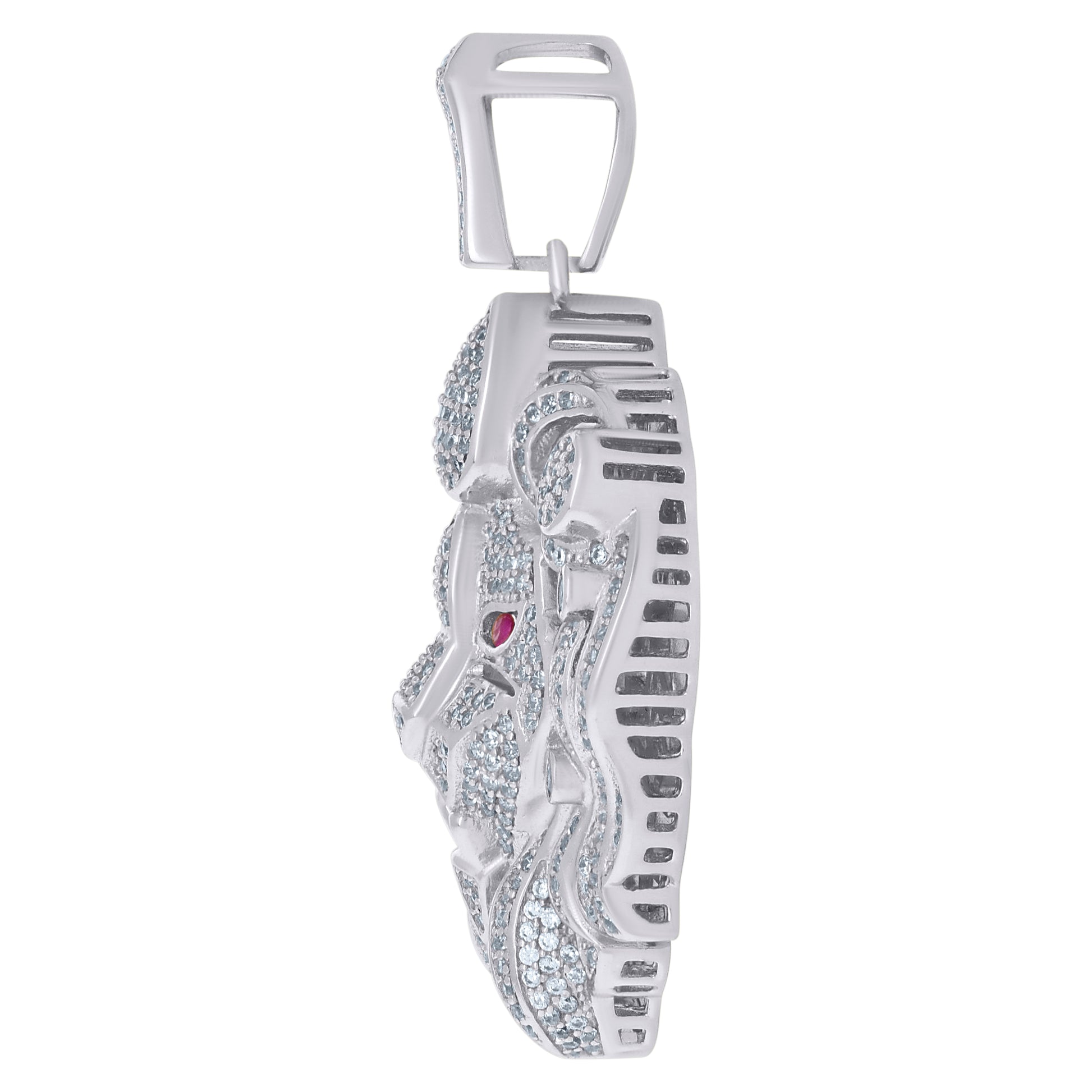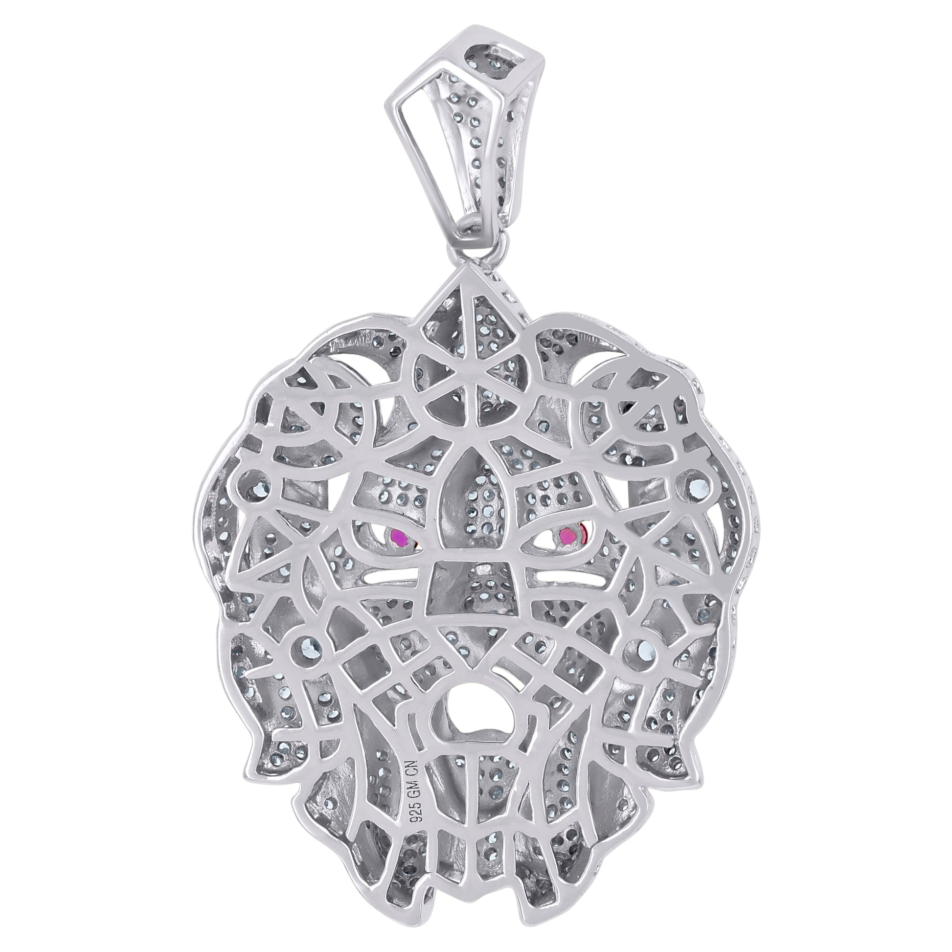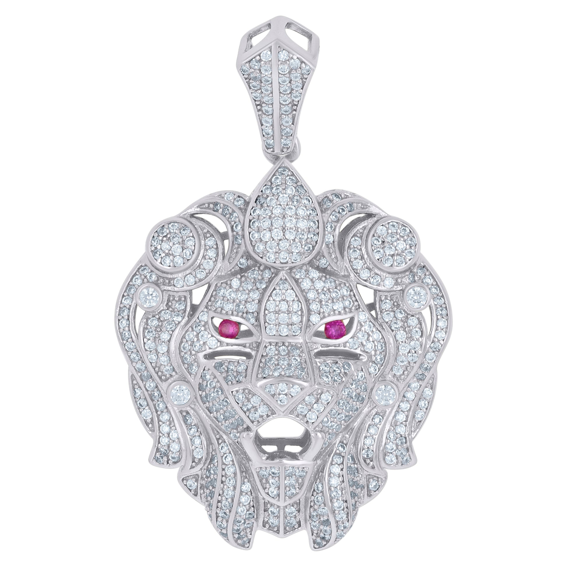925 Sterling Silver Mens Purple White Cubic-Zirconia Leo/Lion Head Animal Zodiac Sign/Wildlife Charm Pendant
