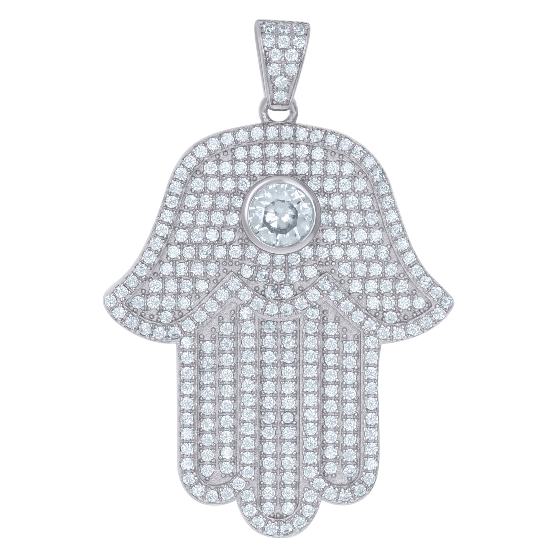 925 Sterling Silver Mens Cubic Zirconia Religious Hamsa Charm Pendant