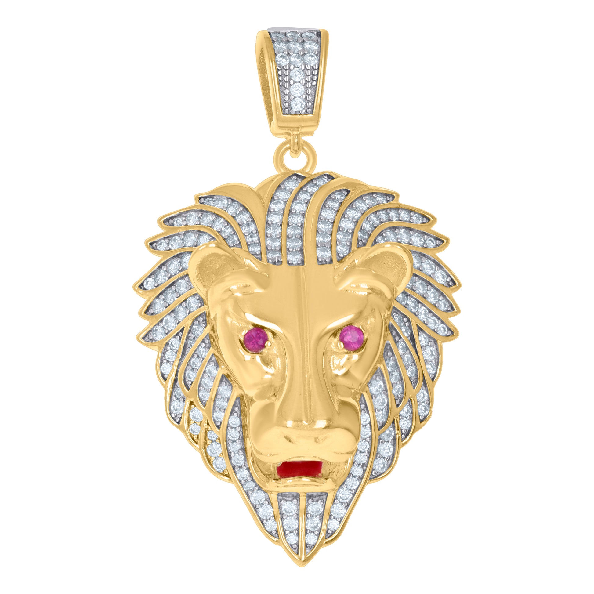 Yellow-Tone 925 Sterling Silver Mens Round Cubic Zirconia Lion Face Charm Pendant