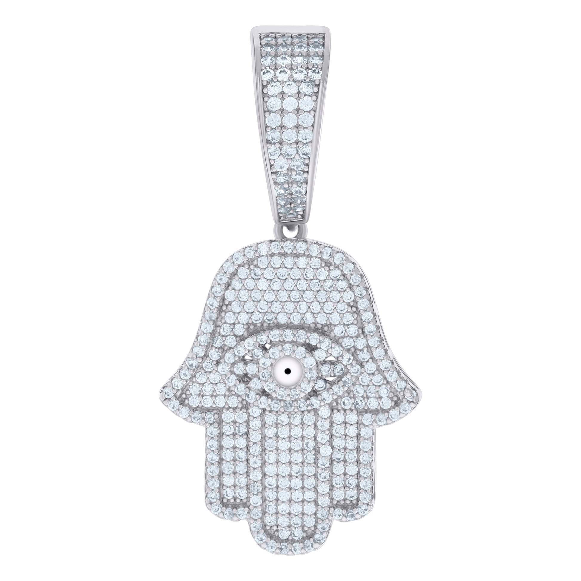 925 Sterling Silver Mens Cubic-Zirconia Evil Eye Hamsa Symbol Religious Charm Pendant