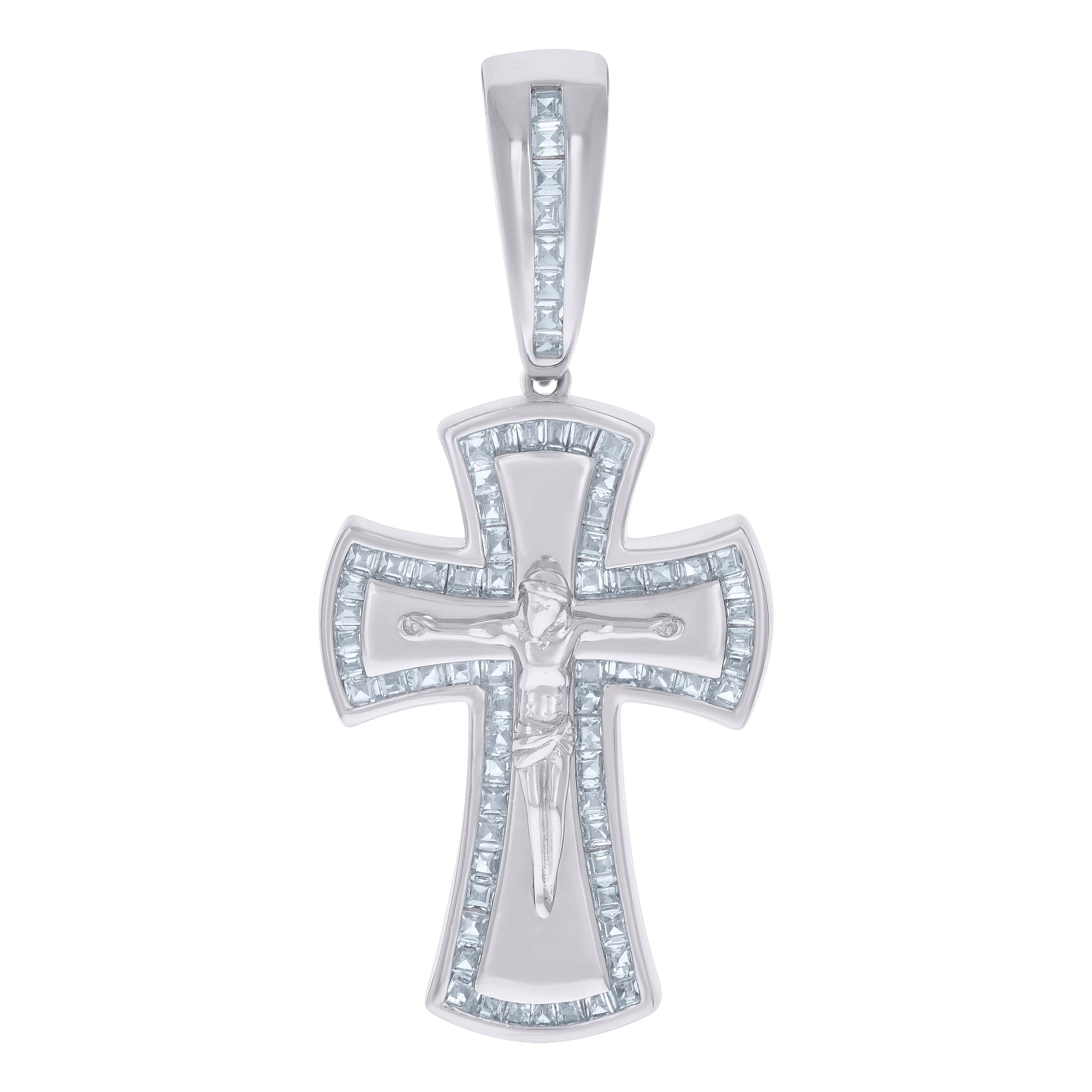 925 Sterling Silver Mens Baguette Cubic-Zirconia Crucifix Cross Religious Charm Pendant