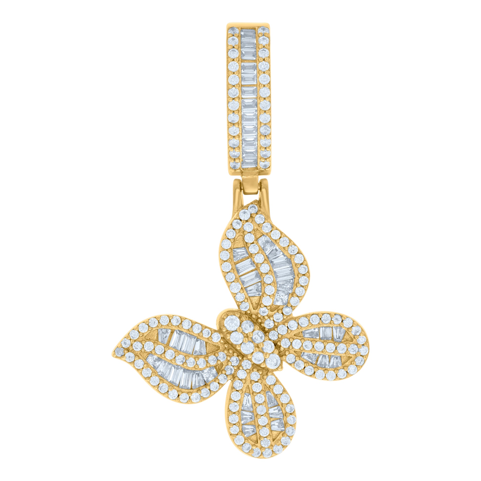 925 Sterling Silver Yellow-tone Womens Baguette Round Cubic-Zirconia Butterfly Charm Pendant