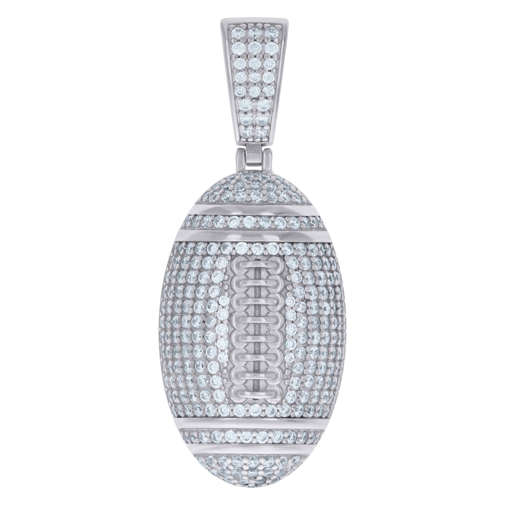 925 Sterling Silver Mens Cubic-Zirconia Football Sport Charm Pendant