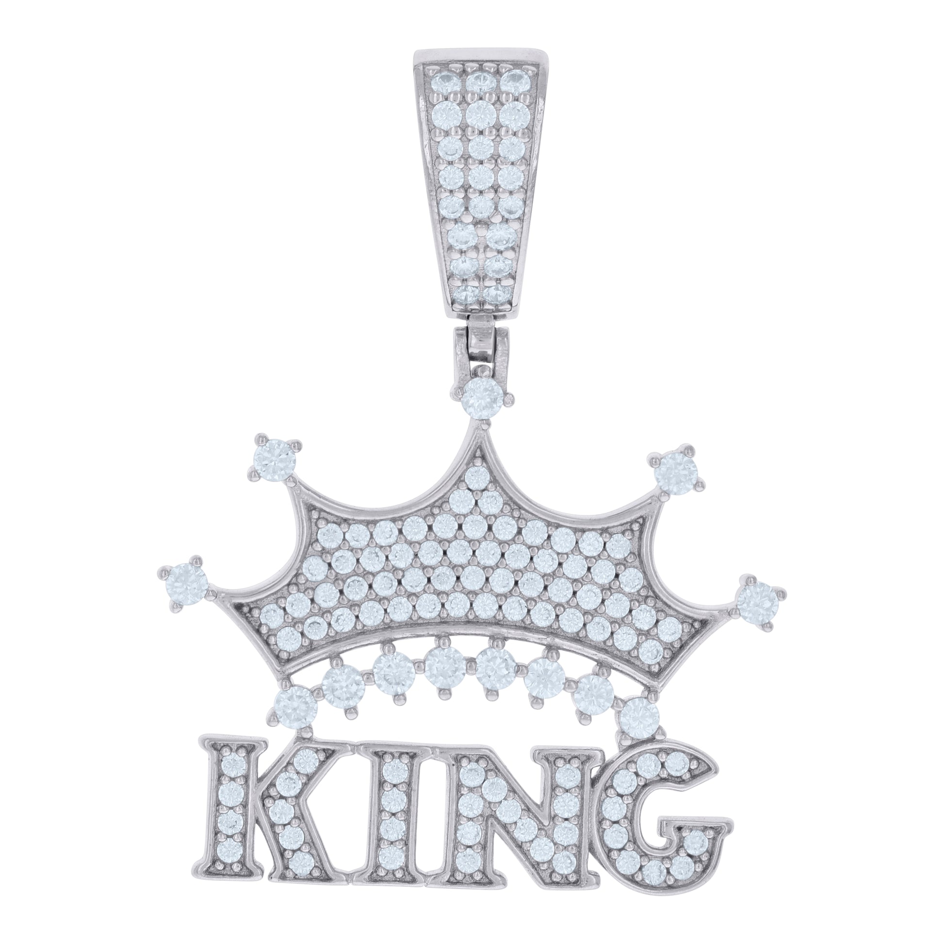 925 Sterling Silver Mens Cubic-Zirconia KING Fashion Charm Pendant