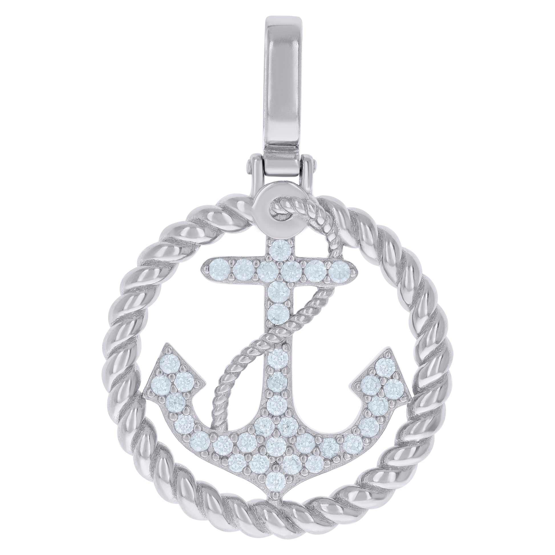 925 Sterling Silver Mens Cubic-Zirconia Anchor Ocean Charm Pendant
