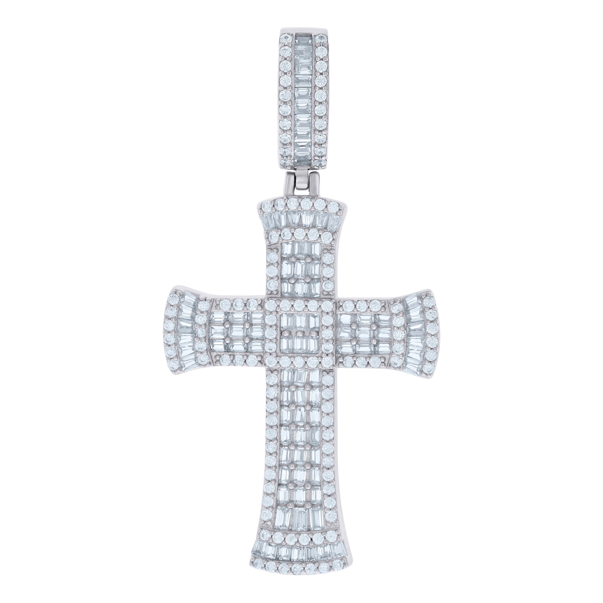 925 Sterling Silver Mens Baguette Round Cubic-Zirconia Cross Religious Charm Pendant