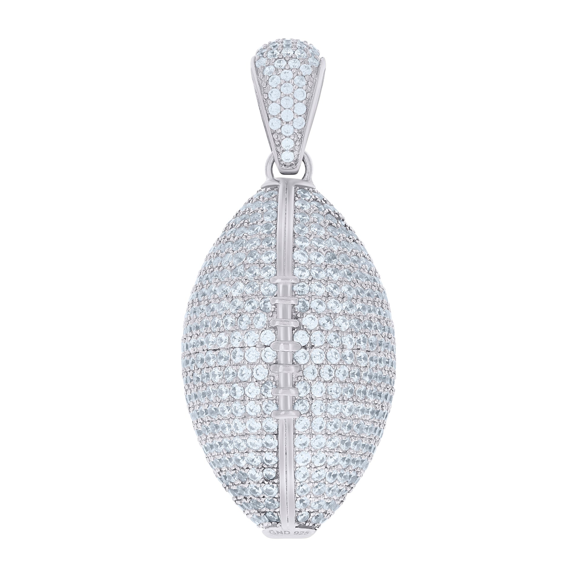 925 Sterling Silver Mens Round Cubic Zirconia Football Charm Pendant