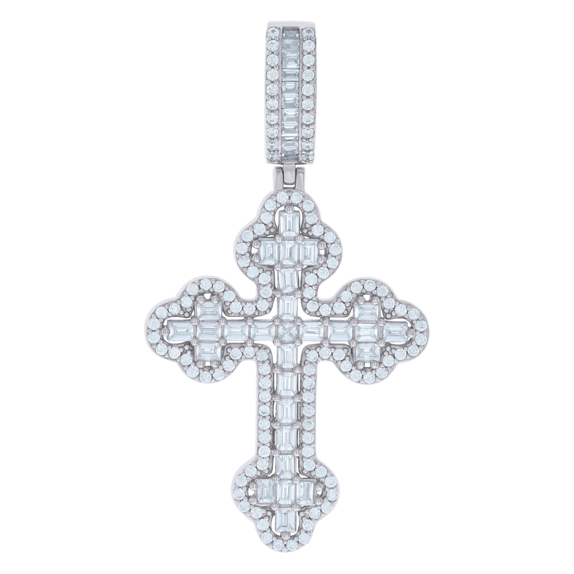 925 Sterling Silver Mens Baguette Round Cubic-Zirconia Cross Religious Charm Pendant