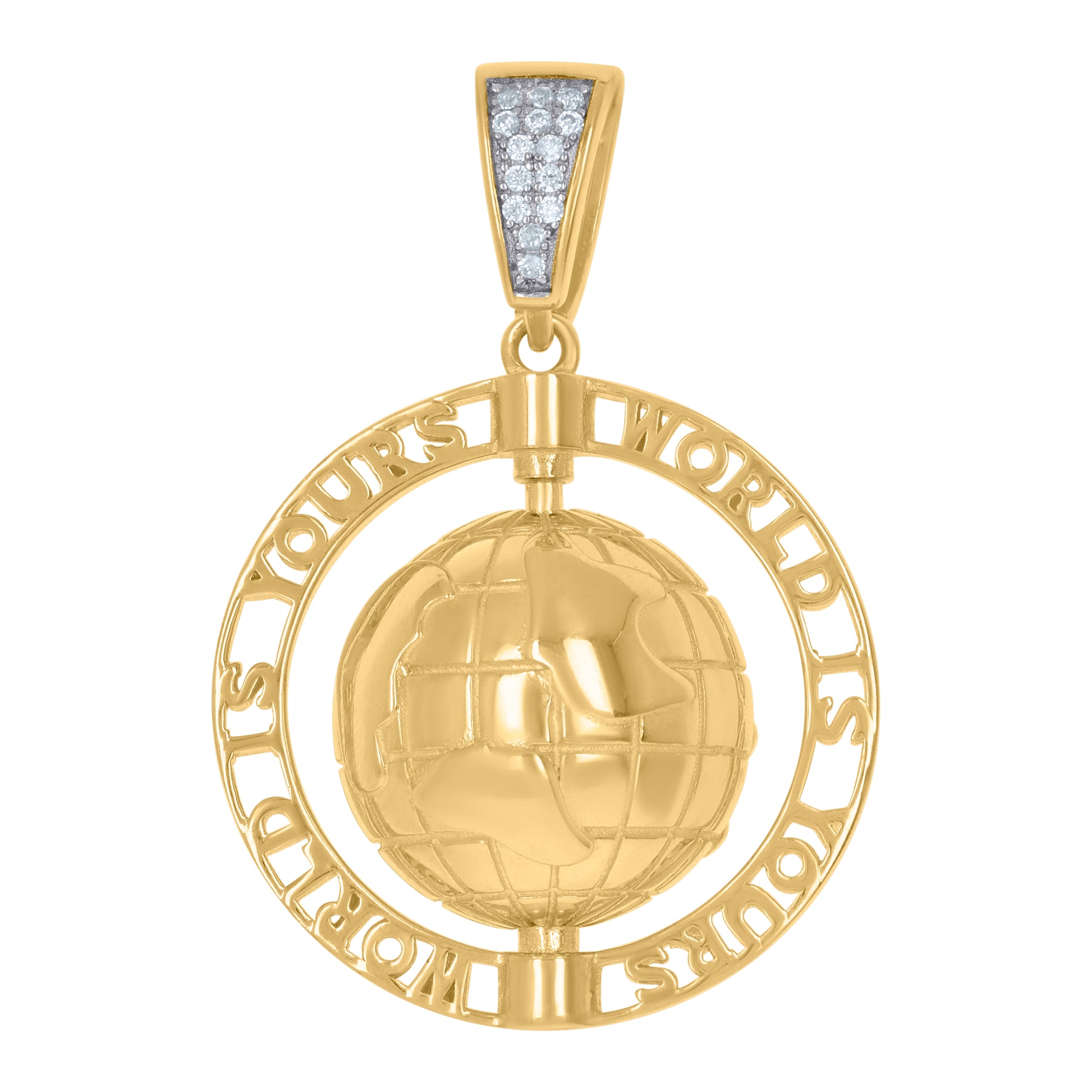 Yellow-Tone 925 Sterling Silver Mens Round Cubic Zirconia World Globe Charm Pendant
