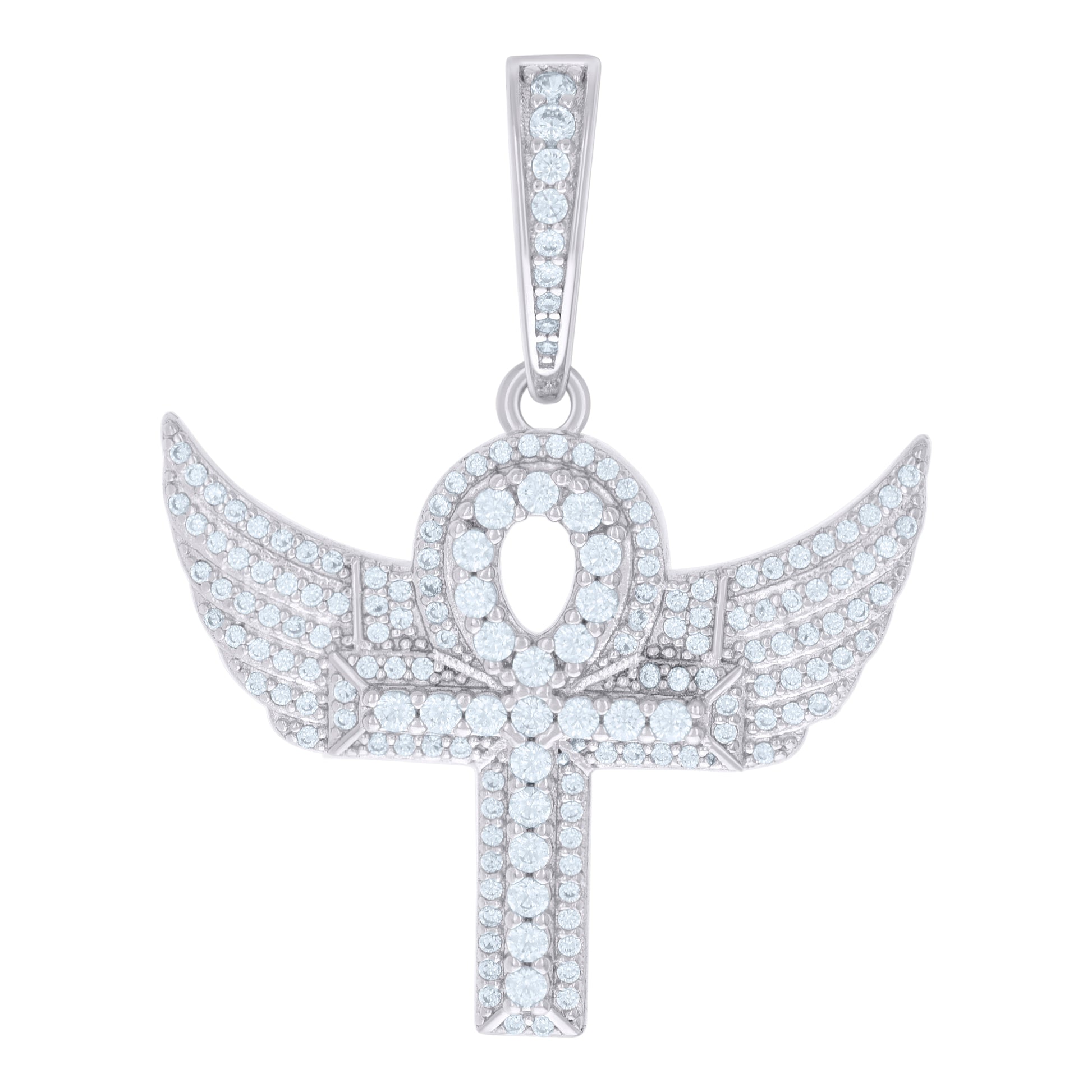 925 Sterling Silver Mens Cubic-Zirconia Egyptian Flying Ankh Cross Religious Charm Pendant