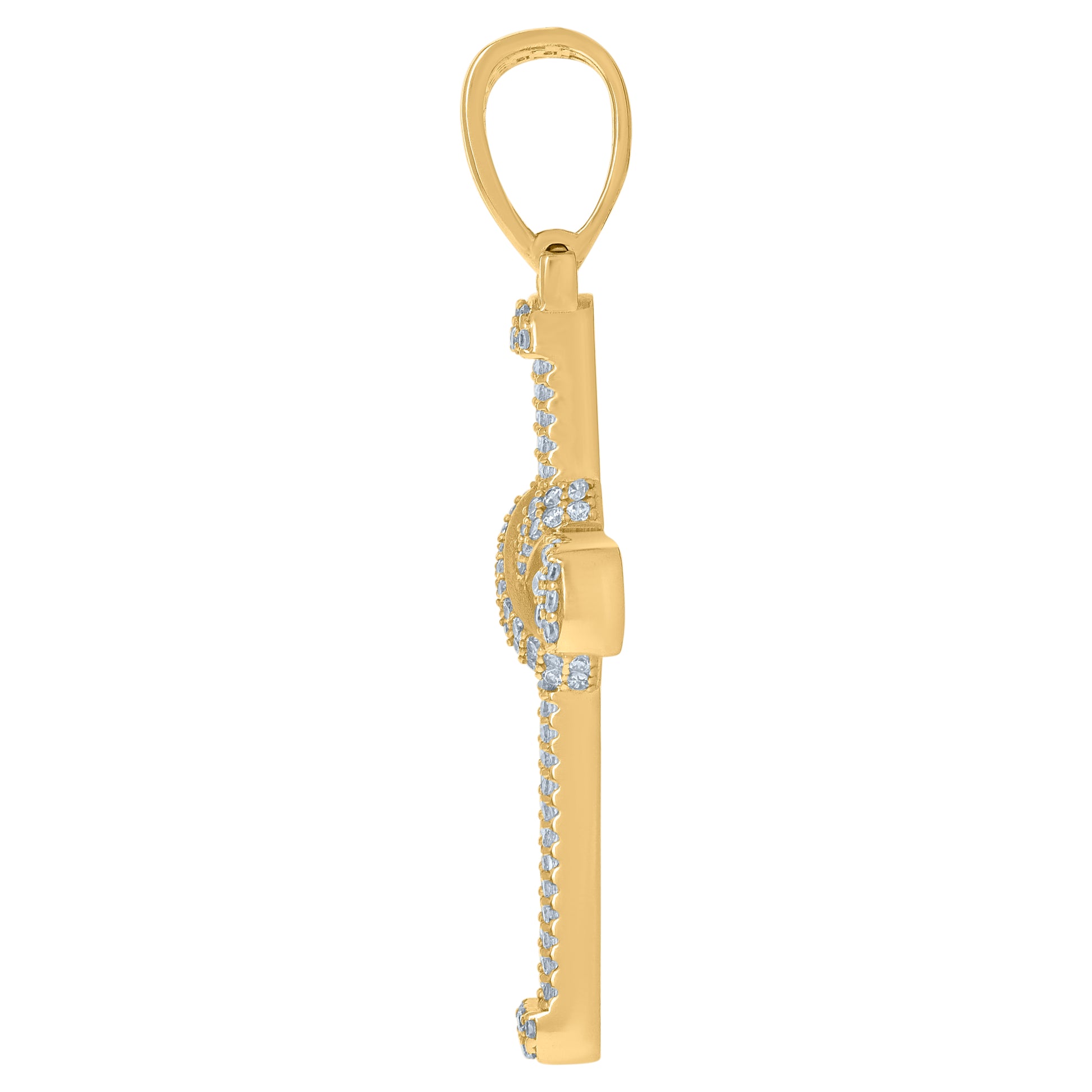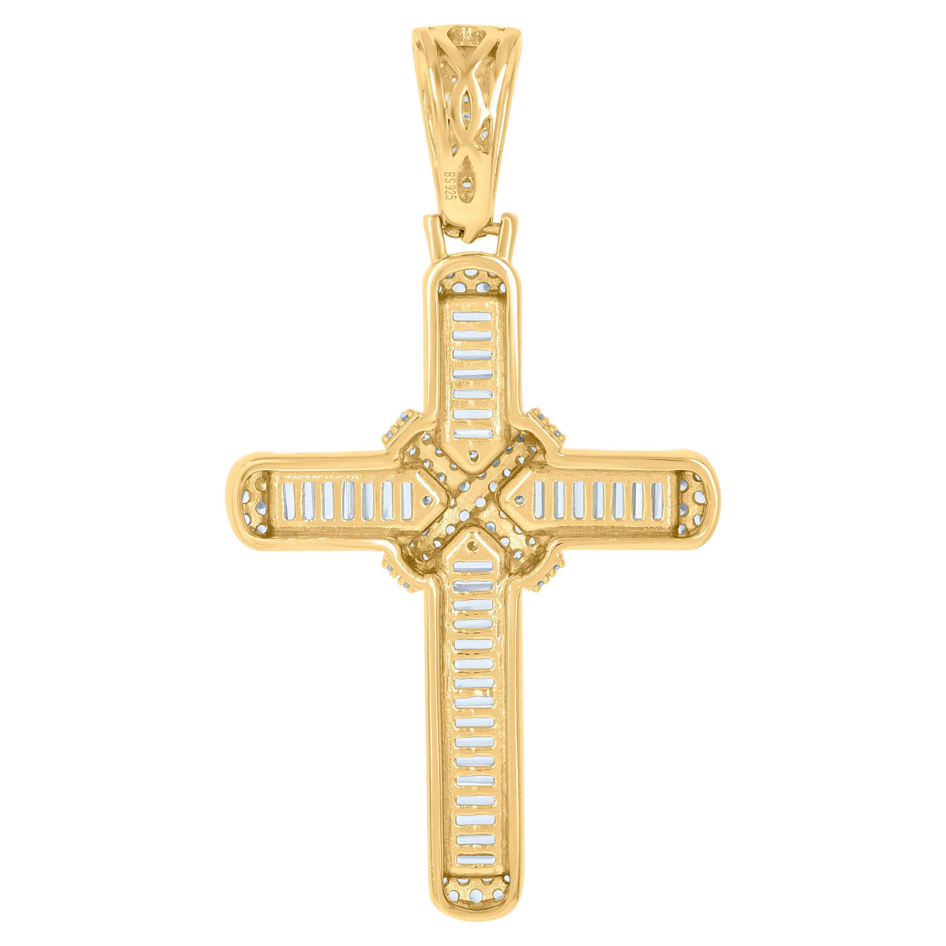 925 Sterling Silver Yellow-tone Mens Baguette Round Cubic-Zirconia Cross Religious Charm Pendant