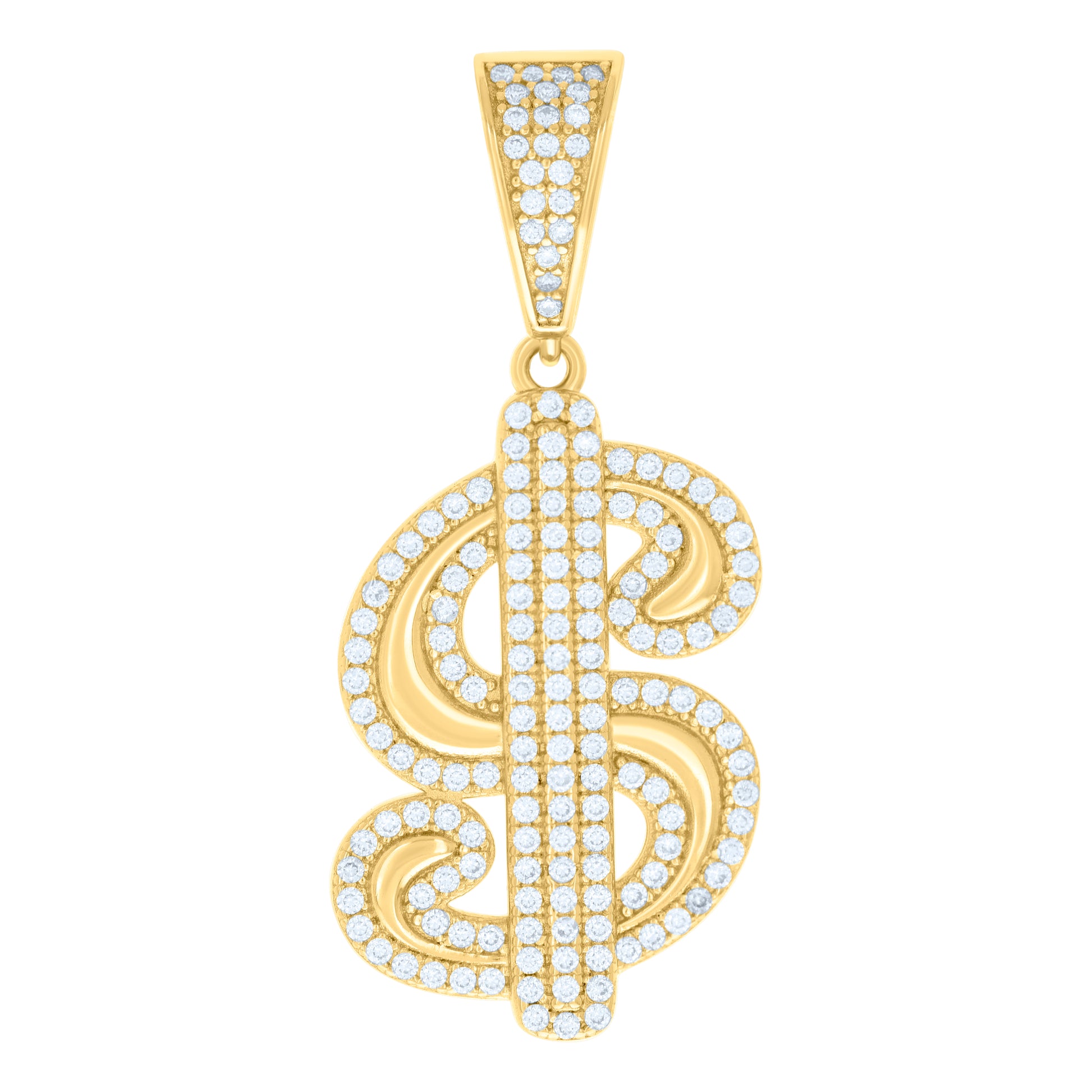 925 Sterling Silver Yellow-tone Mens Cubic-Zirconia Dollar Sign Currency Fashion Pendant
