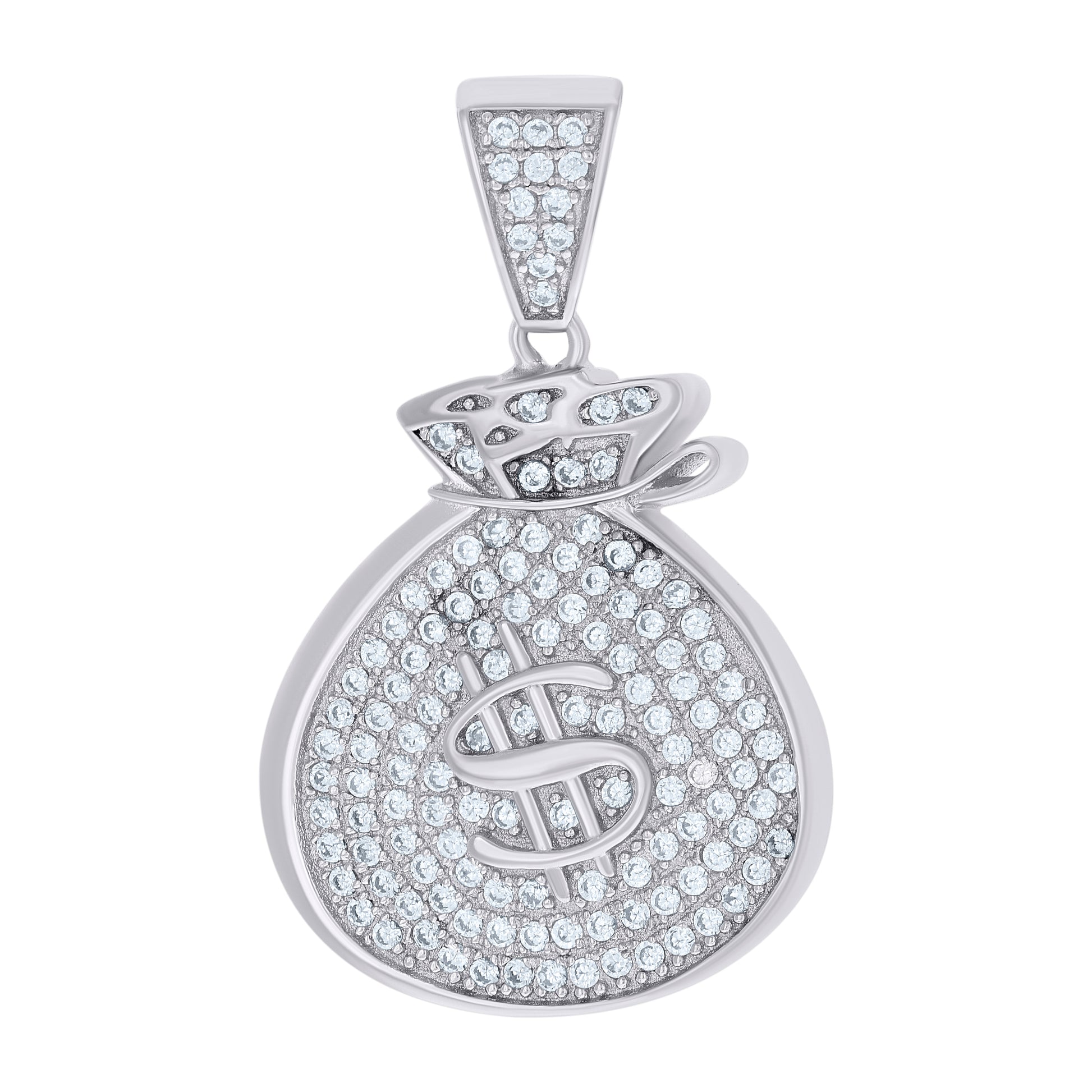 925 Sterling Silver Mens Round Cubic Zirconia Money Bag Cluster Charm Pendant