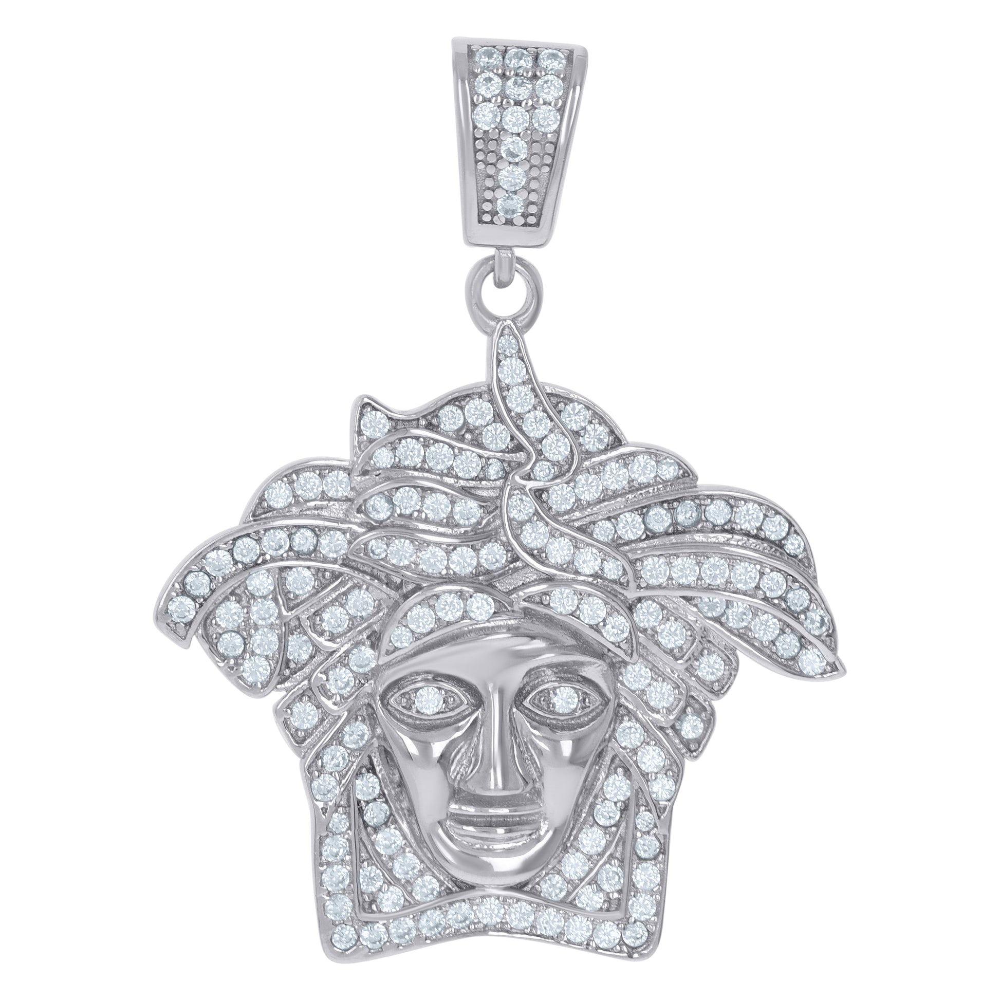 925 Sterling Silver Mens Cubic-Zirconia Medusa Egyptian Fashion Charm Pendant