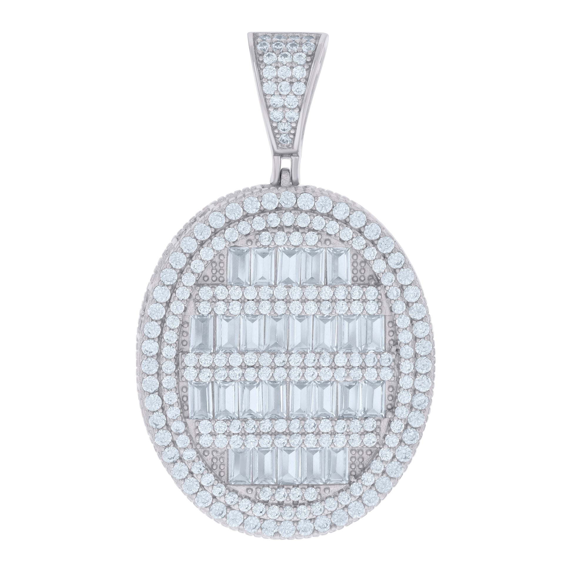 925 Sterling Silver Mens Baguette Round Cubic-Zirconia Oval Medallion Fashion Charm Pendant