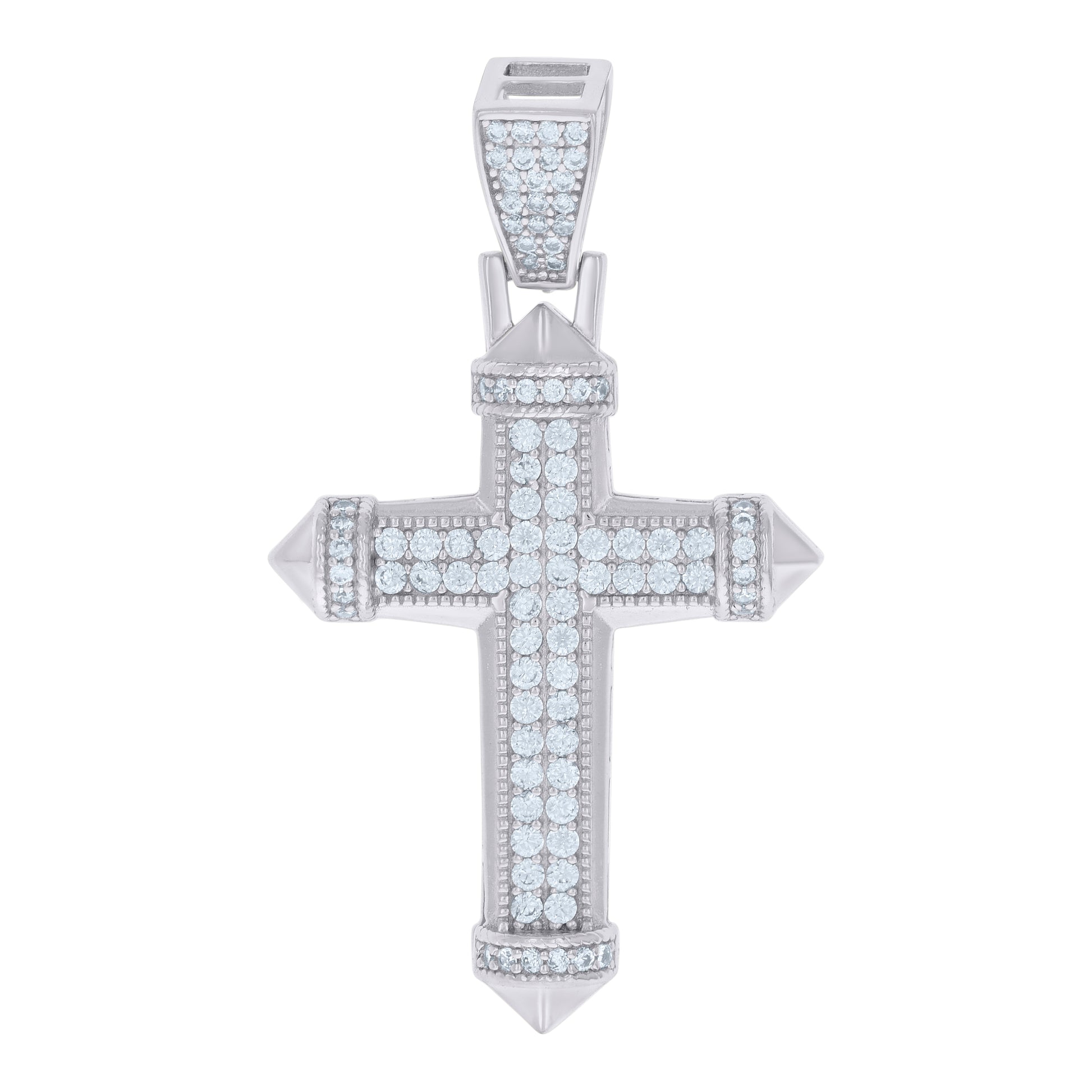 925 Sterling Silver Mens Cubic-Zirconia Cross Religious Charm Pendant