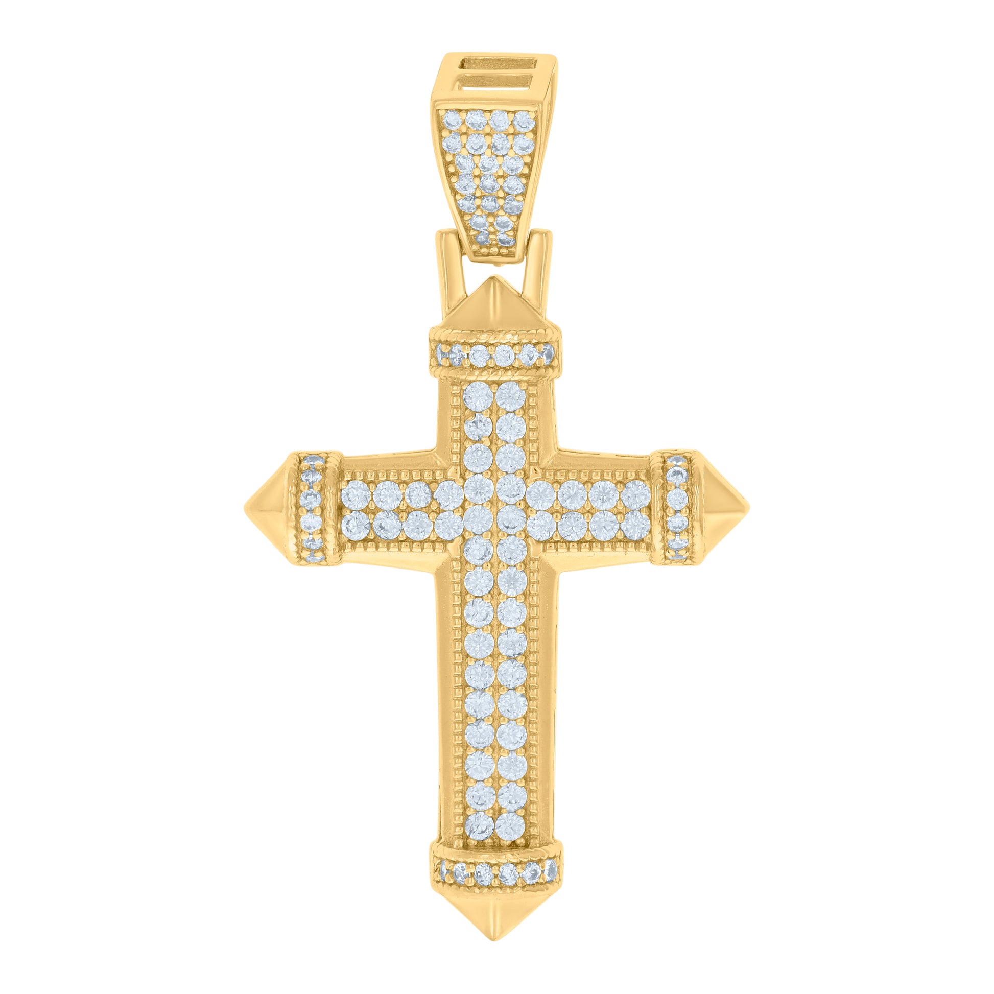 925 Sterling Silver Yellow-tone Mens Cubic-Zirconia Cross Religious Charm Pendant