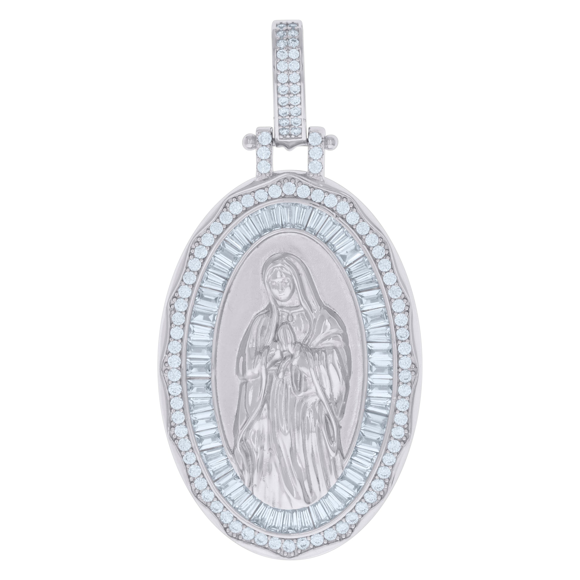 925 Sterling Silver Mens Baguette Round Cubic-Zirconia Guadalupe Religious Charm Pendant