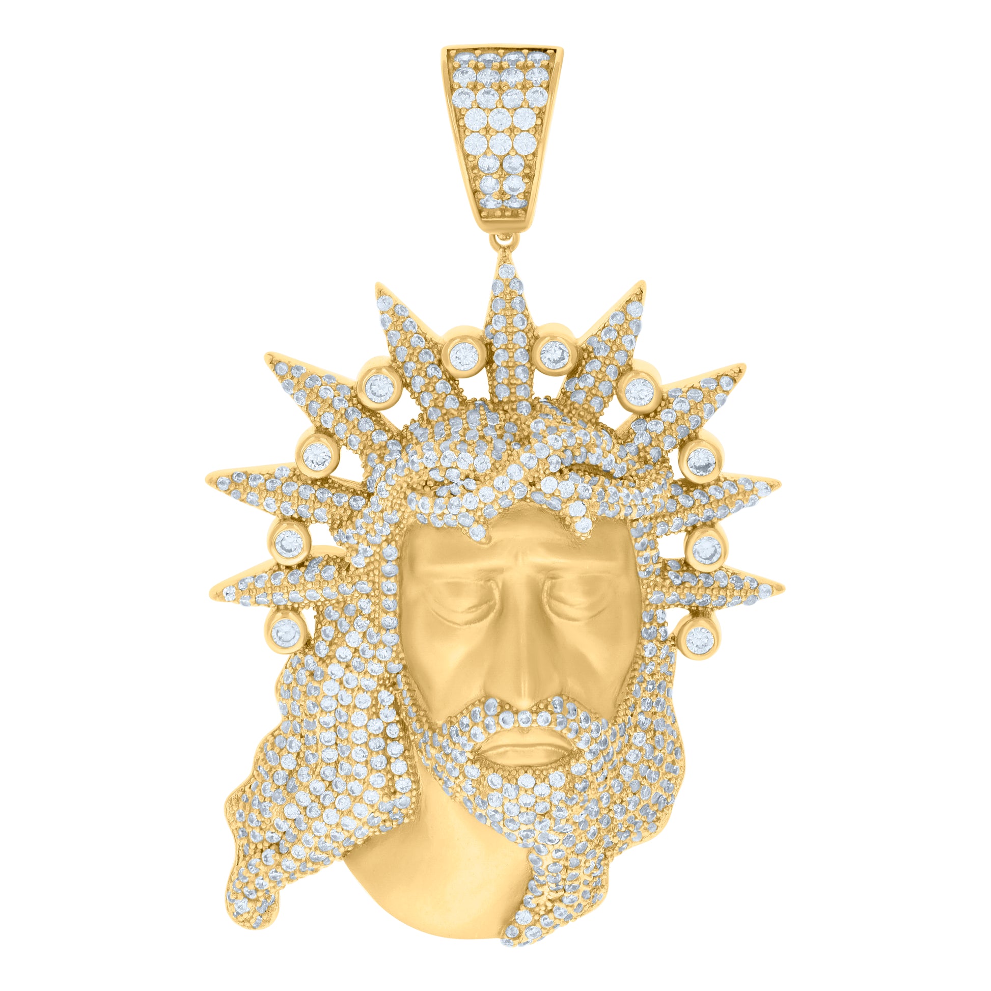 925 Sterling Silver Yellow-tone Mens Cubic-Zirconia Jesus Religious Charm Pendant