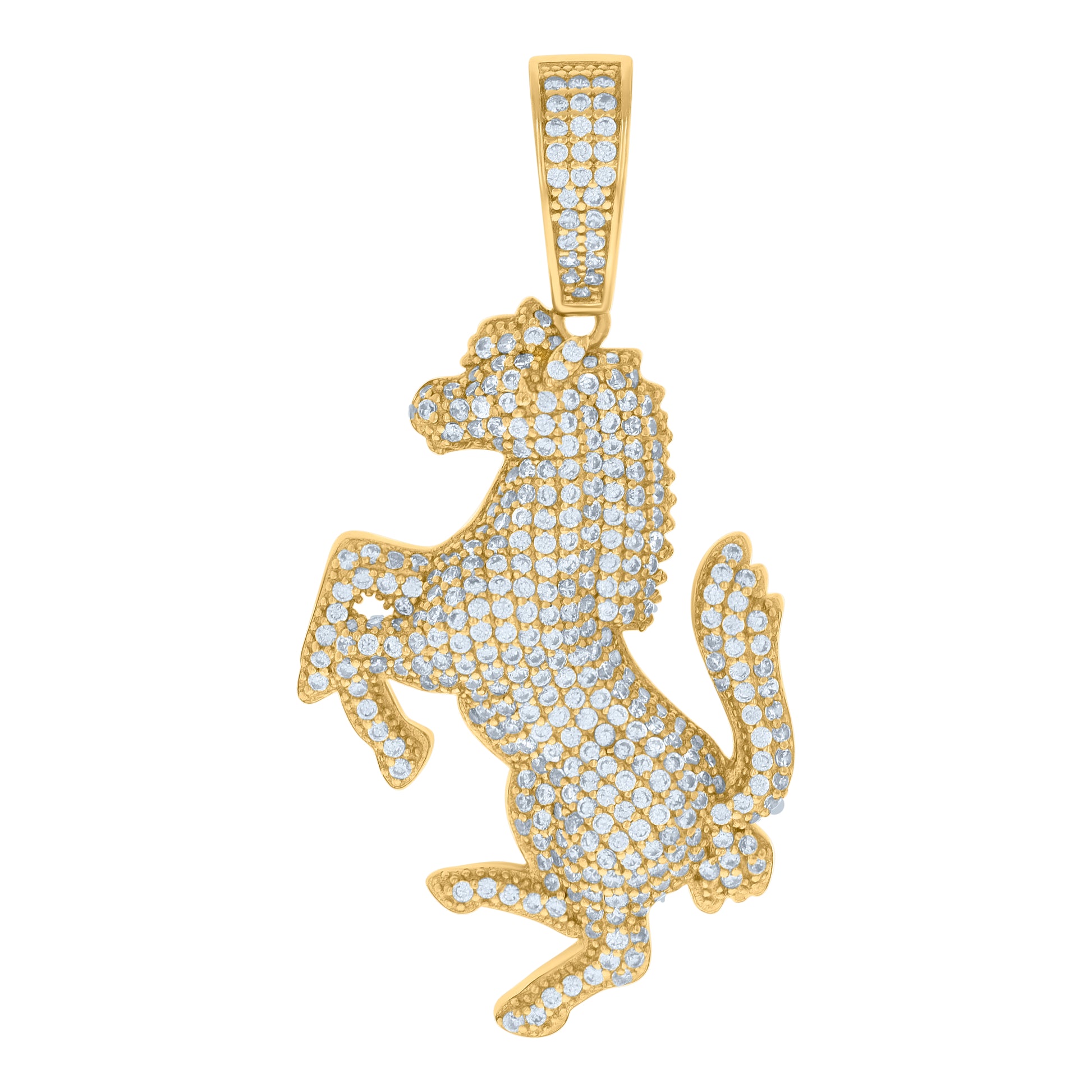 925 Sterling Silver Yellow-tone Mens Cubic-Zirconia Race Horse Animal Wildlife Charm Pendant
