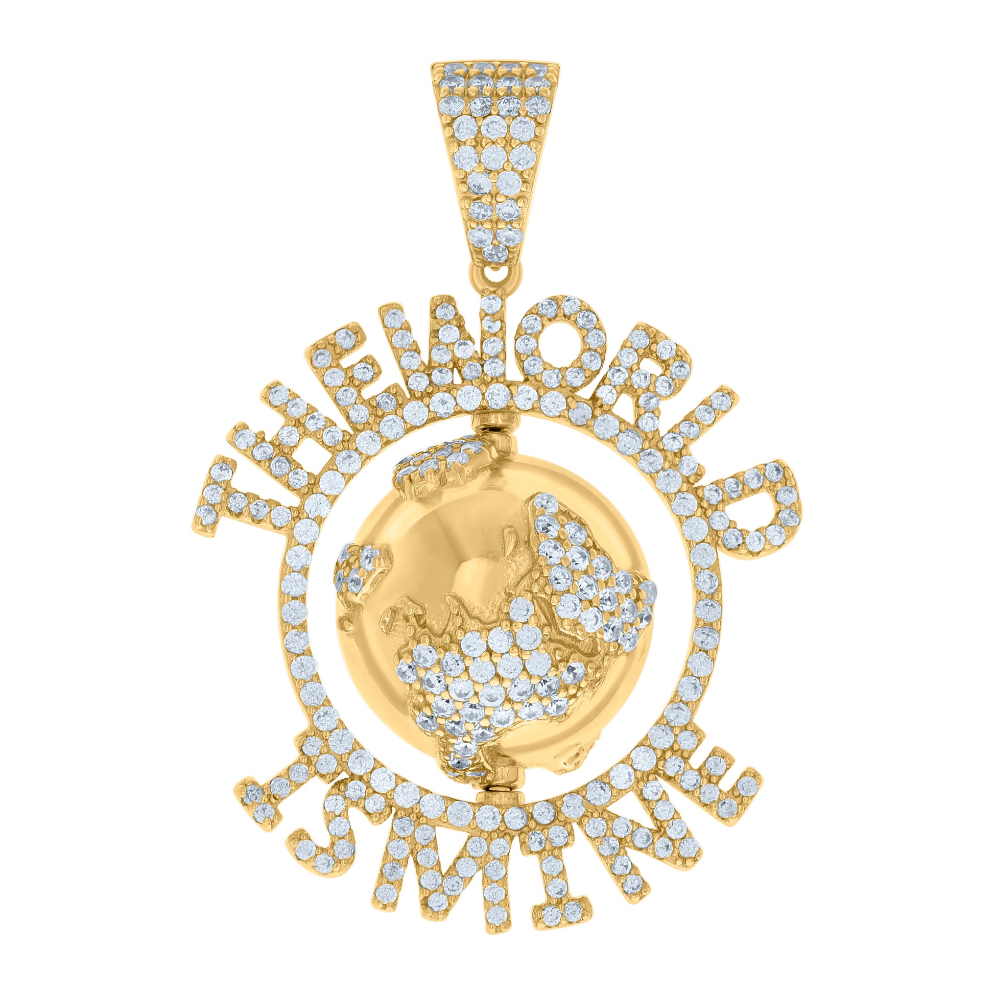 925 Sterling Silver Yellow-tone Mens Cubic-Zirconia The World Is Mine World Map Charm Pendant