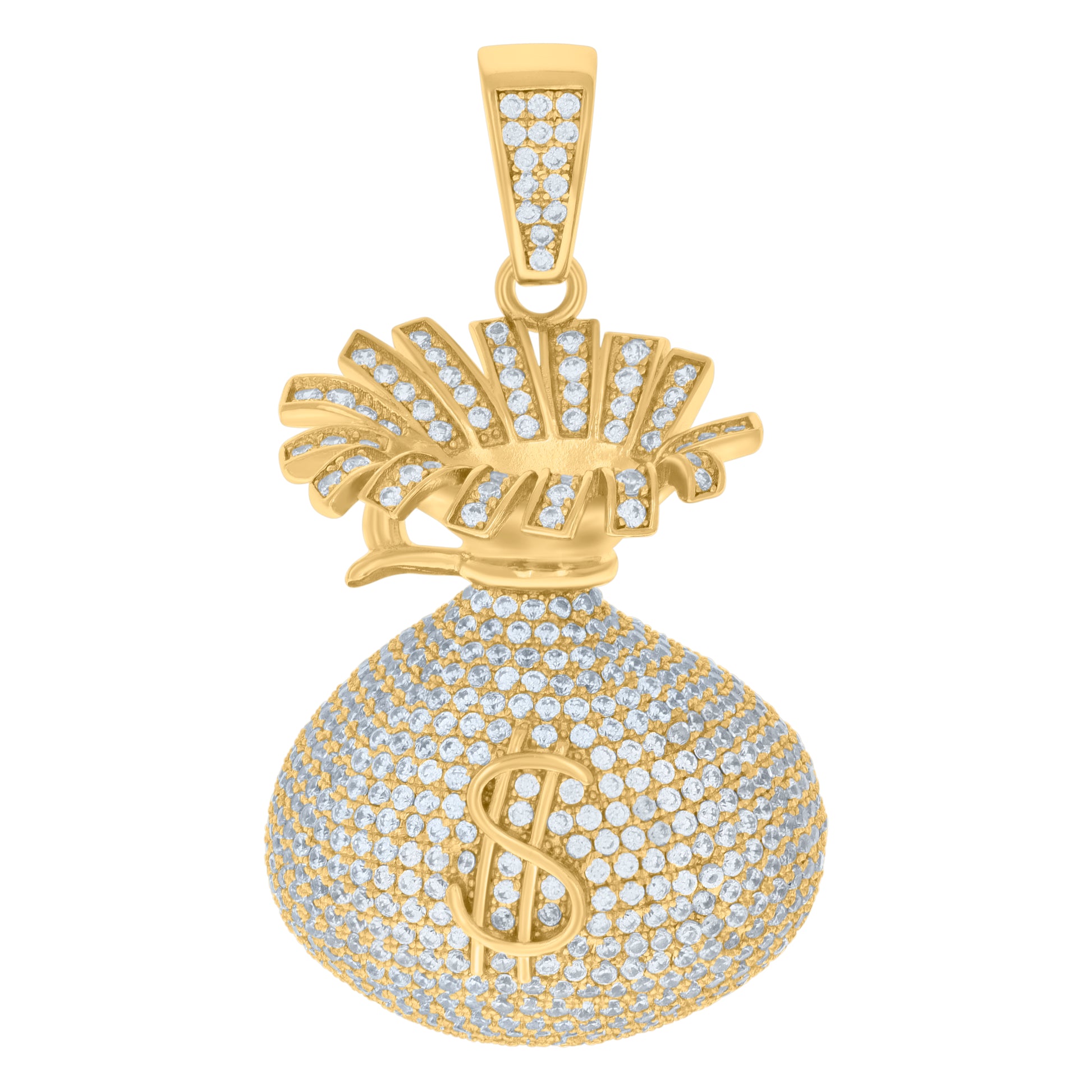 925 Sterling Silver Yellow-tone Mens Cubic-Zirconia Money Bag Currency Fashion Charm Pendant