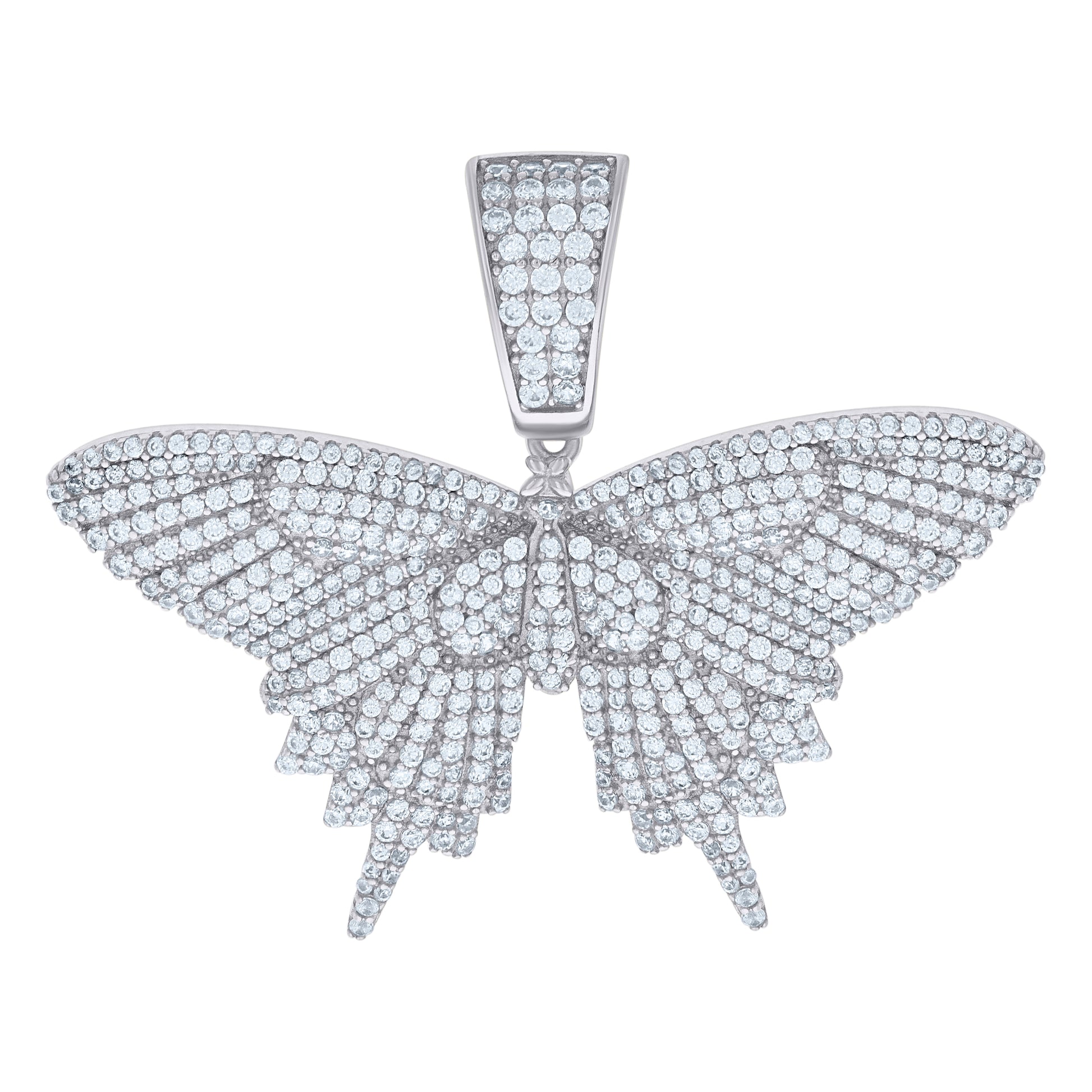 925 Sterling Silver Mens Cubic-Zirconia Butterfly Fashion Charm Pendant