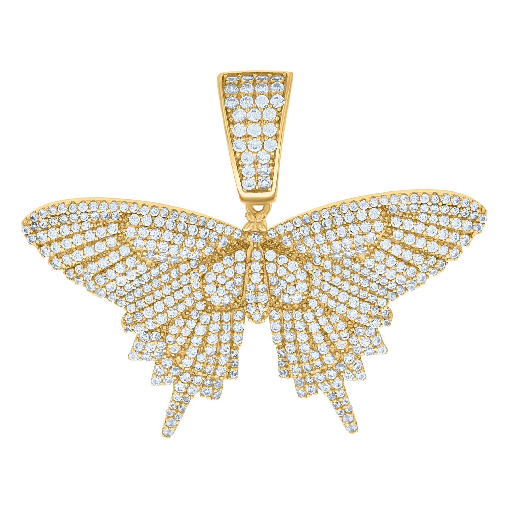 925 Sterling Silver Yellow-tone Mens Cubic-Zirconia Butterfly Fashion Charm Pendant