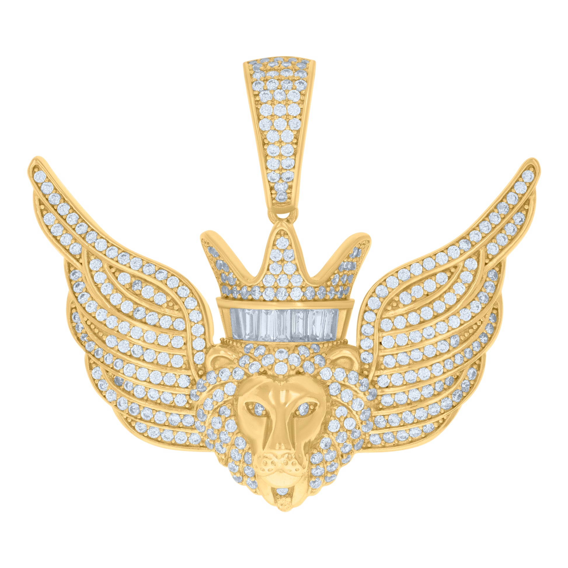 925 Sterling Silver Yellow-tone Mens Cubic-Zirconia Flying Leo/Lion Zodiac Sign/Wildlife Pendant