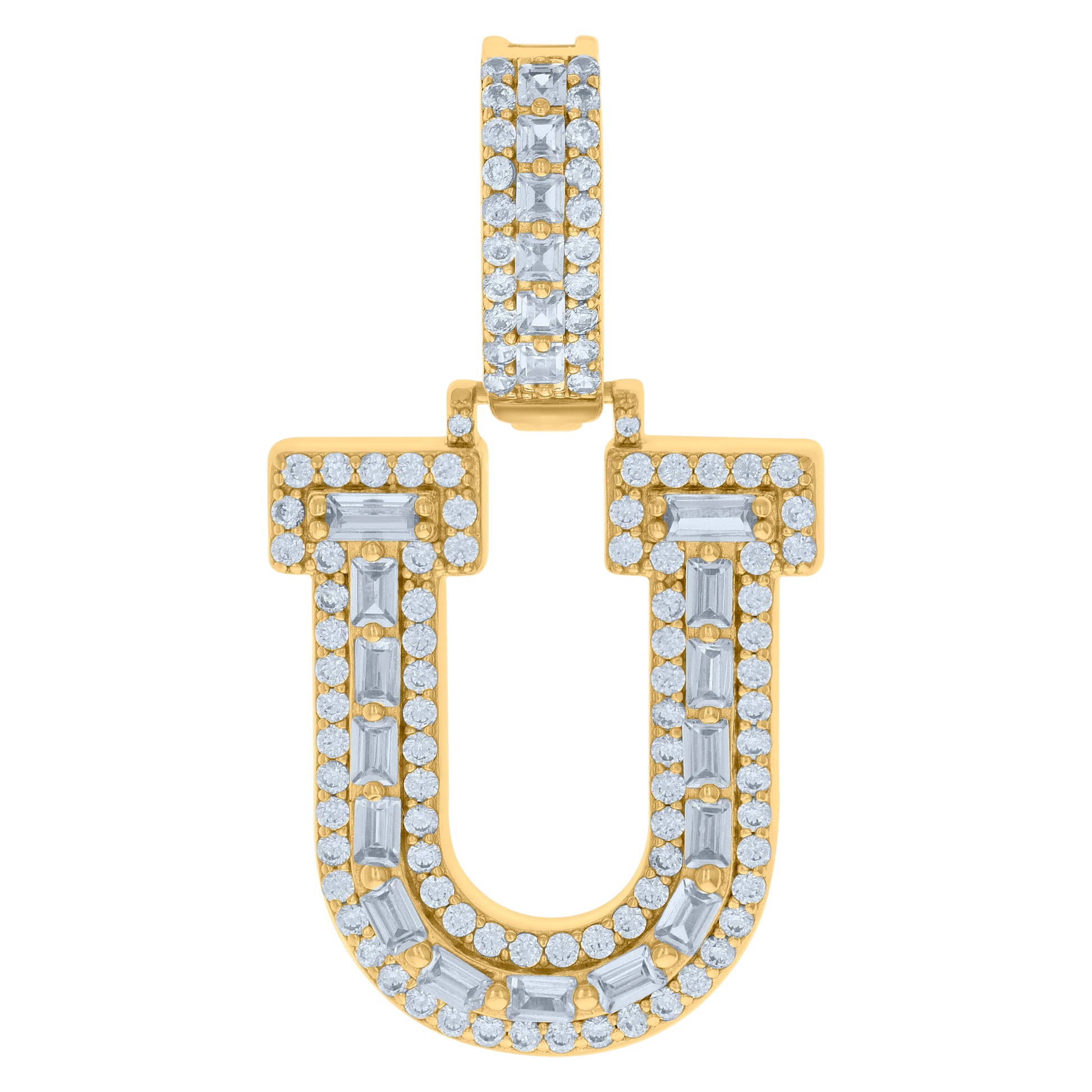 925 Sterling Silver Yellow-tone Unisex Cubic-Zirconia Initial U Alphabet Charm Pendant